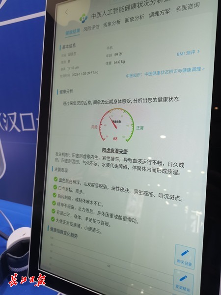 “操作很简单,速度超快!”刘女士兴奋地分享感受,“报告说我是湿热体质,还结合现在的节气和我平时的饮食习惯,给出了很具体的饮食建议,比如推荐吃些薏米、红豆。给出的养生方向很明确,特别实用。”