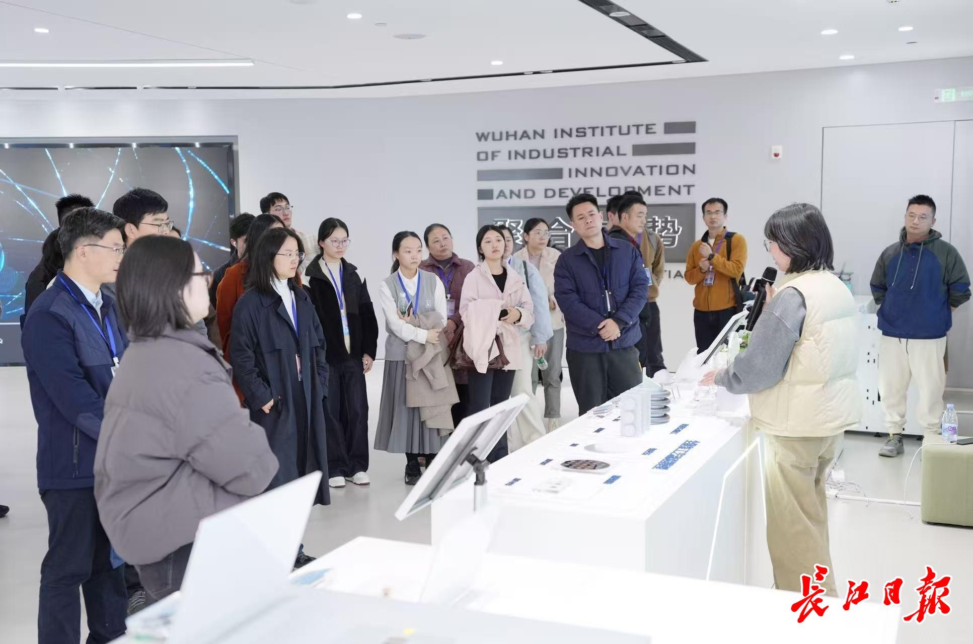 来到武创院,“城市观察团”仿佛走进武汉的科创生态圈——东风汽车、烽火通信、华工激光与华中科技大学、武汉大学以及湖北九峰山实验室、湖北珞珈实验室、国家信息光电子创新中心等企业、高校、科研院所汇聚起产学研全链条。