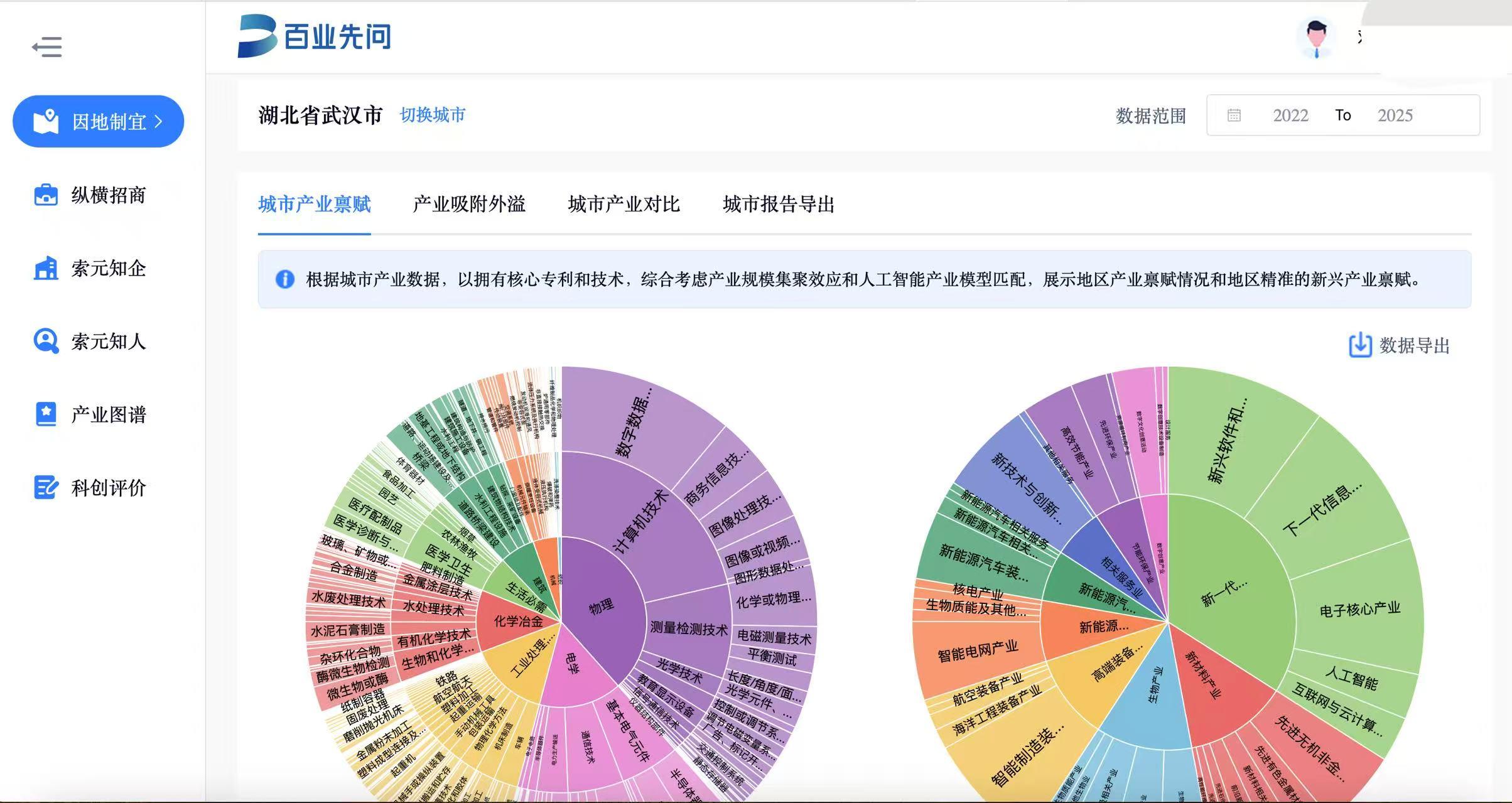 如今,“百业先问®”平台已形成因地制宜、产业图谱、科创评价等核心模块,其AI能力可自动解析产业链、生成报告、挖掘企业关联,并将艰深专利转化为易懂信息,真正赋能决策。