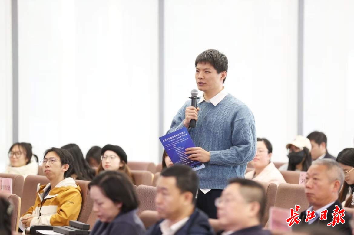 华中科技大学研究生王麒隆发言分享参观感受。 记者陈亮 摄