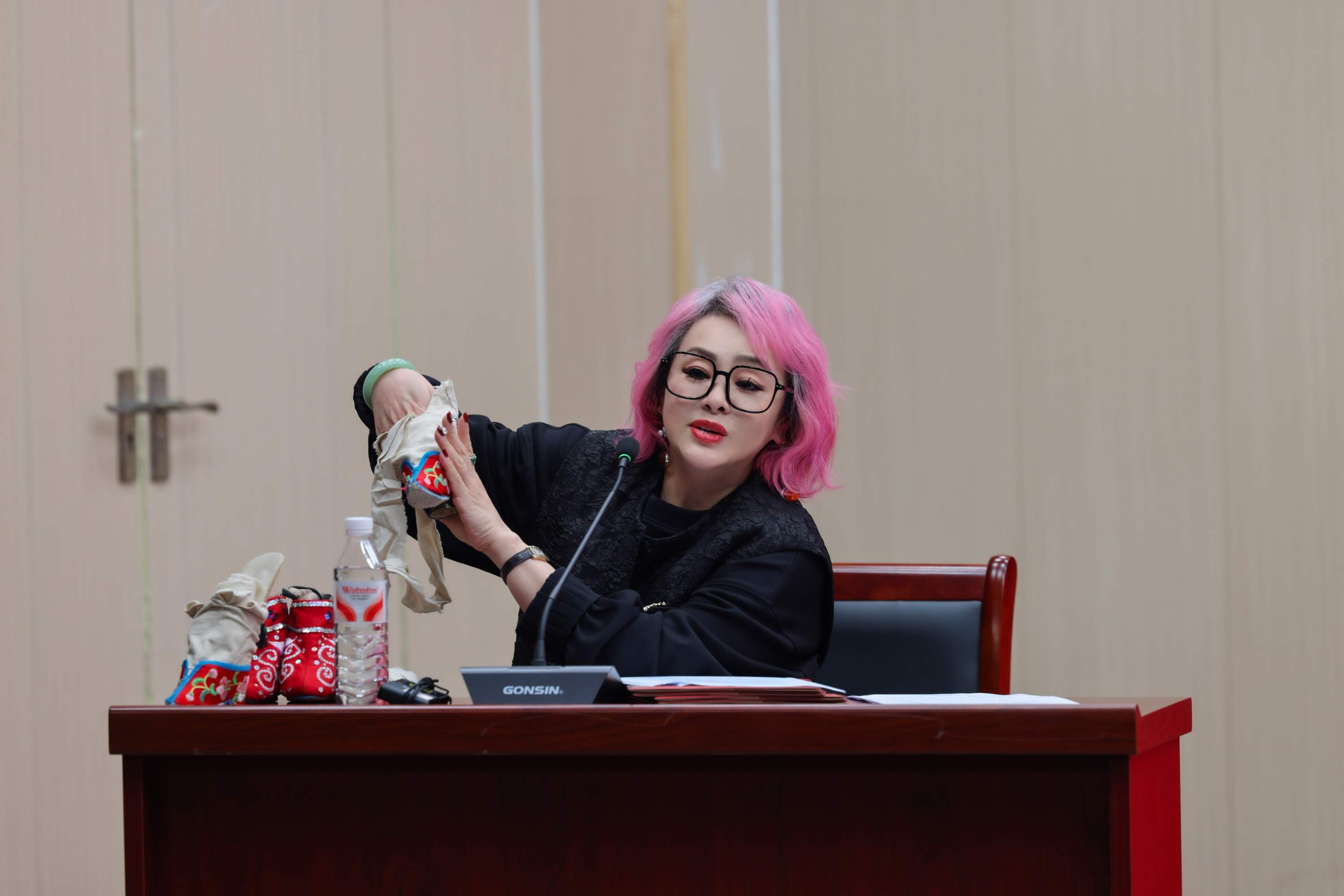 “小脚一双,眼泪一缸。”刘子微在活动现场向学子们展示了演员练功时穿的“跷”:“演员要把脚尖朝下插入跷功鞋内,用绑带把脚背同木芯牢牢扎紧,腿和脚腕都要绷直。不管多累,演员的脚跟始终不能落地。脚趾磨破了,小腿练肿了,都是家常便饭。”