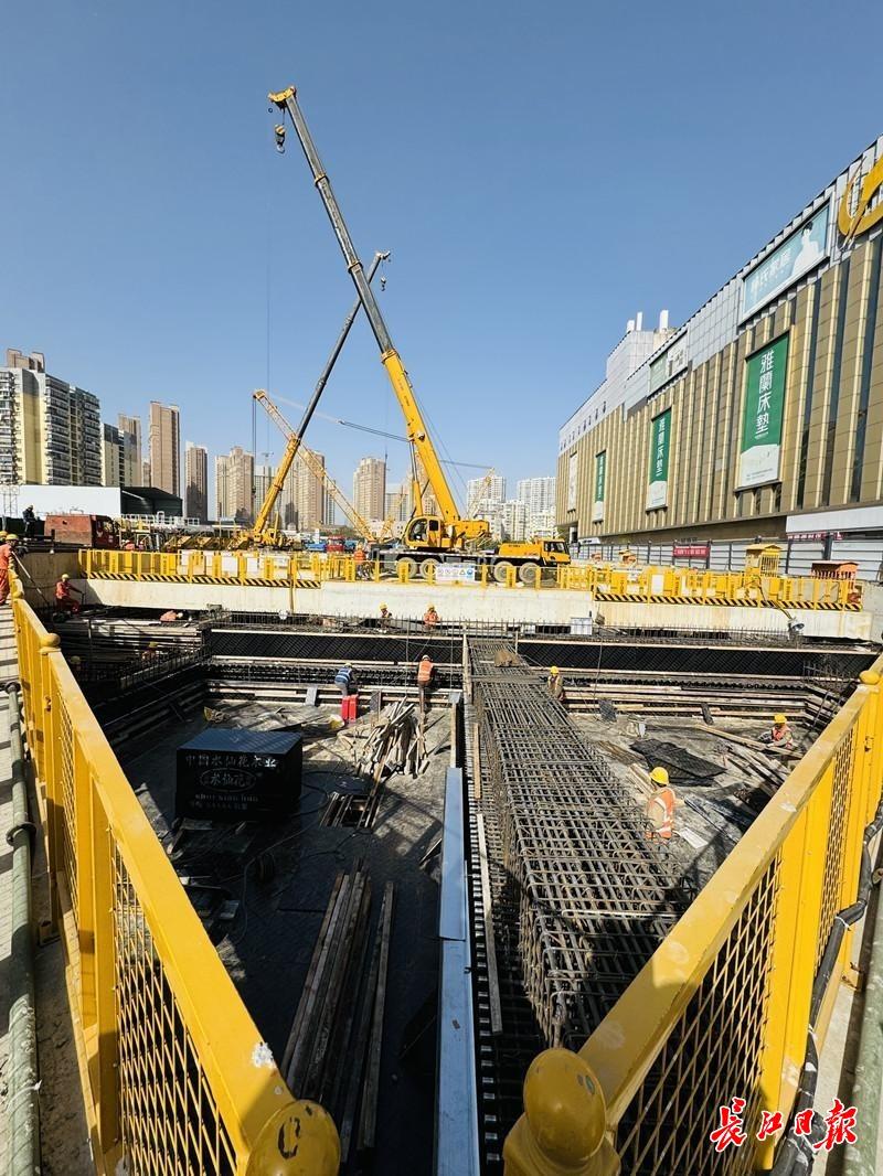 地铁10号线一期余家头站最后一块顶板施工。 记者陶常宁 摄