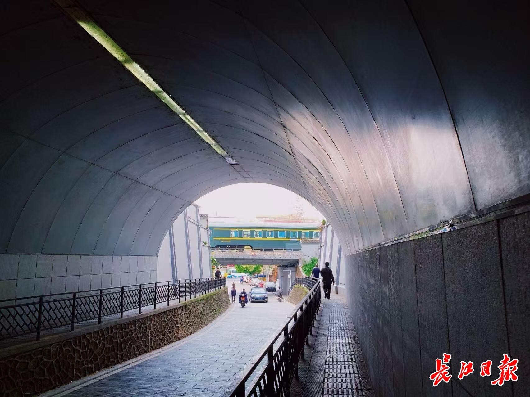 近日,武昌鼓楼洞成了新的“打卡点”,拍穿桥而过的绿皮火车成为潮流。记者余睿 摄