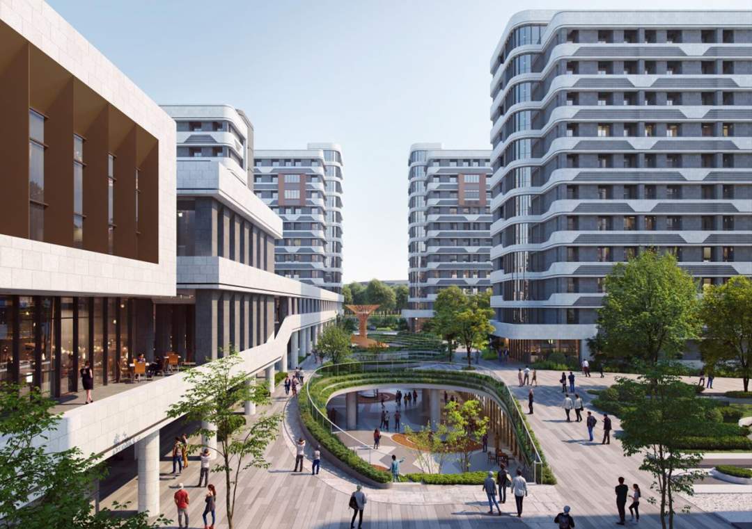新校区二期学生宿舍六组团(含学三食堂)项目效果图。 由中建三局提供
