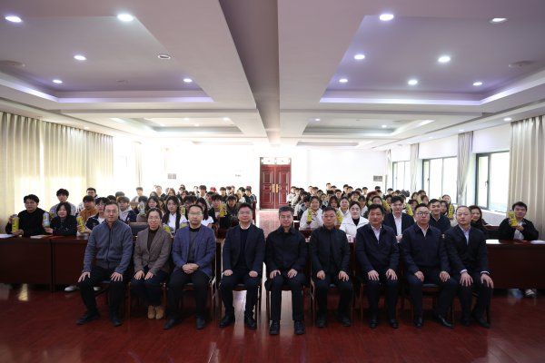27日上午,乐惠国际南京基地董事长黄东宁(左五)、乐惠国际副总经理万财飞(右三)、湖北轻工职业技术学院校长夏光蔚(左四)等出席湖北轻工职业技术学院第二届乐惠国际奖学金的颁发仪式。