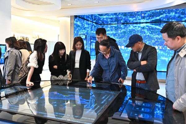 调研团首站来到了宝安区城市规划展览馆。该馆位于宝安区图书馆二、三层,是深圳市规模最大的区级城市规划展馆。在讲解人员的介绍下,嘉宾们通过“岭南古邑”“春天传奇”“名城华章”“智造强区”“湾区引擎”“未来家园”六个篇章,阅览宝安1600多年的历史成就,了解宝安产业发展的脉络和国土空间分区规划,感受宝安的交通优势及民生发展格局,眺望宝安的规划战略与未来视野。