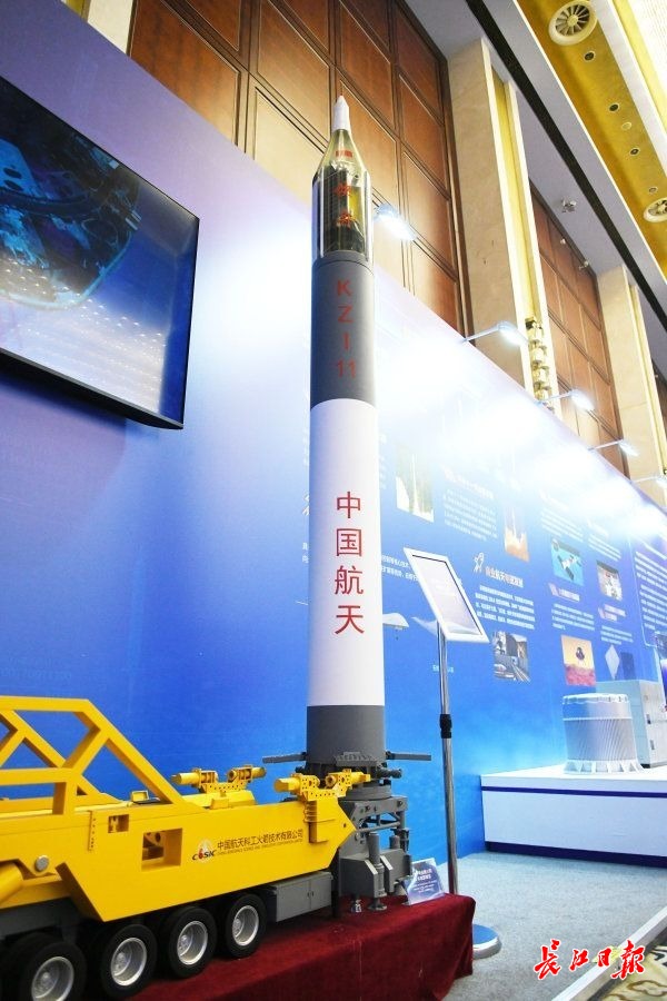 商业航天主题成果展,展出的武汉一号高精度智能遥感卫星。记者詹松 摄