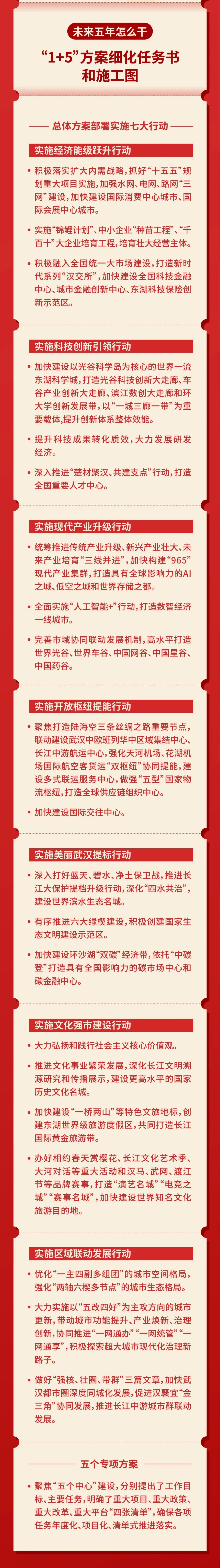 面向“十五五”,我们将锚定全市“五个中心”目标定位,做好“强核、壮圈、带群”三篇文章,以武汉都市圈为中心推进长江中游城市群联动发展。