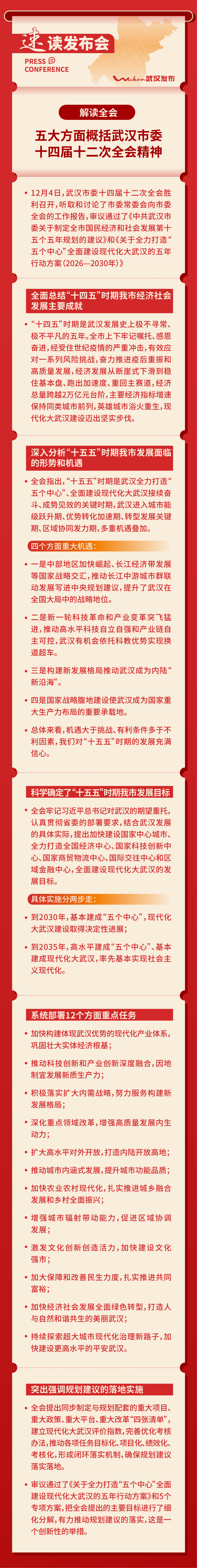 12月5日,中共武汉市委召开新闻发布会,解读中共武汉市委十四届十二次全会精神。