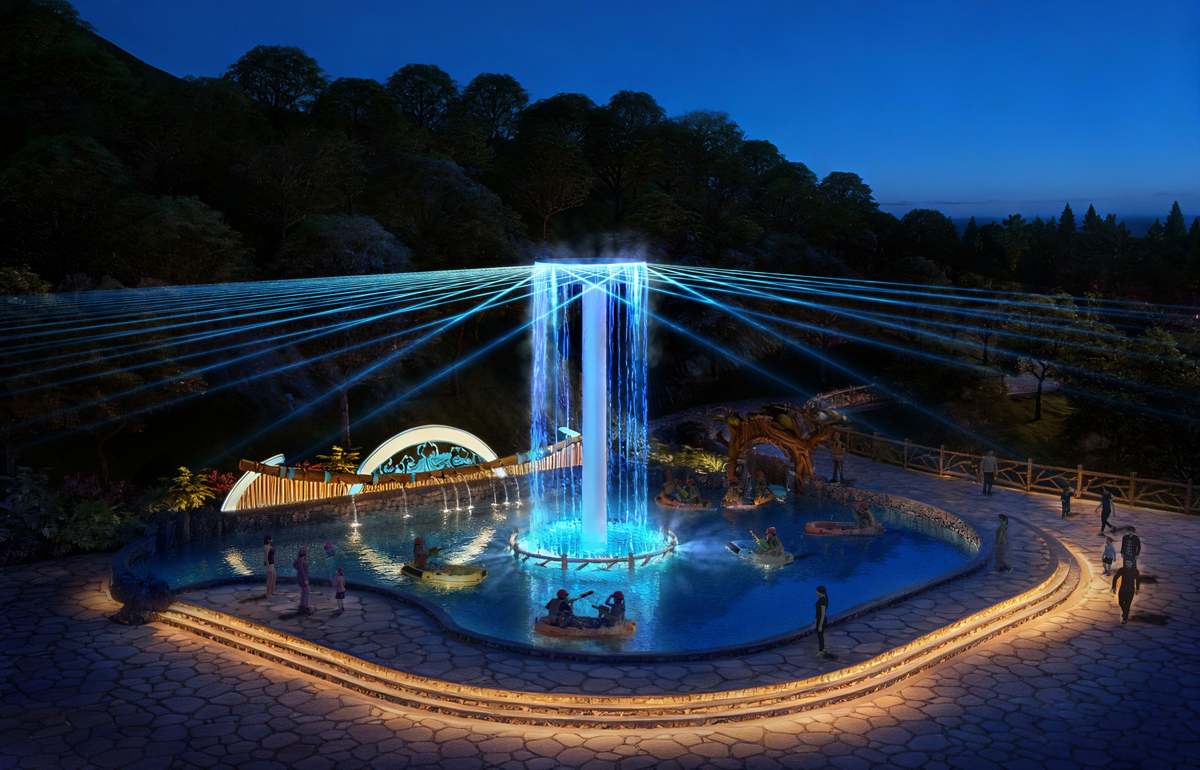 该项目巧妙利用九真山繁茂林地、山体洞穴等天然地形,打造2.5公里智能漂流区域,设计融合声光电及智能AI先进技术,在漂流道沿线设置3D观光、山洞探秘、场景体验等互动装置,不仅提升游客体验,也为当地村民创造多元就业机会。