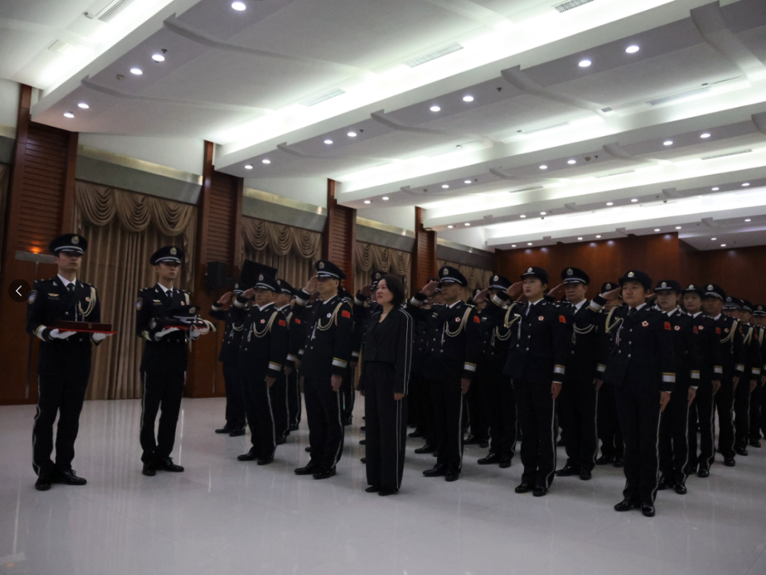 “敬礼!”伴随着雄壮的《中国人民警察警歌》响起,全体人员举起右手致敬,目送昔日战友的警号被移送至分局警史馆。
