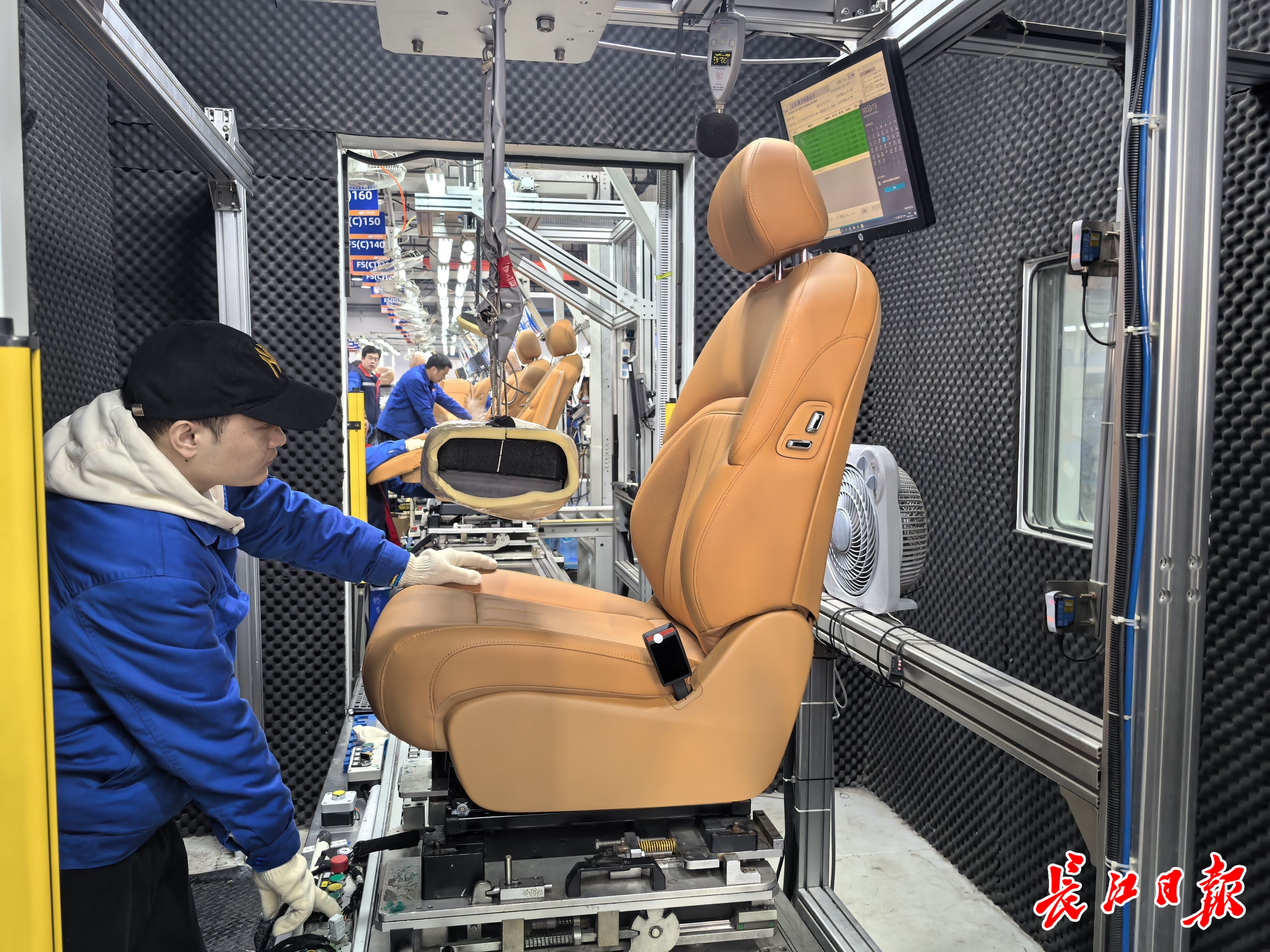 走进武汉天成自控生产基地,楼上,研发人员正在为客户即将上市的新车型研发汽车座椅;楼下,自动化总装生产线高效运转,300余名工人在各自岗位上有序作业。