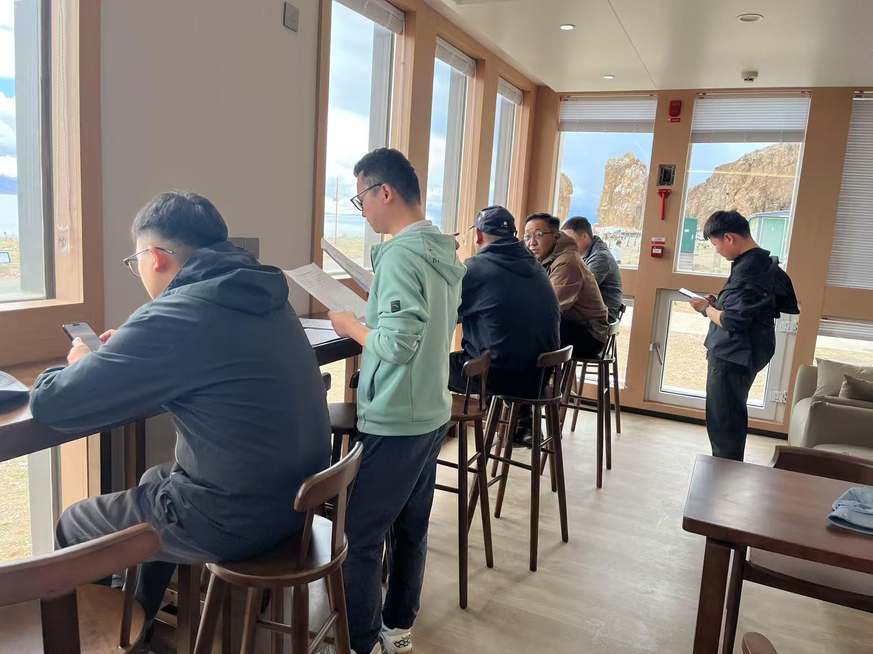 在位于冈仁波齐景区的零海拔屋,西藏文旅工作者正在举行例行工作会议。中建三局供图
