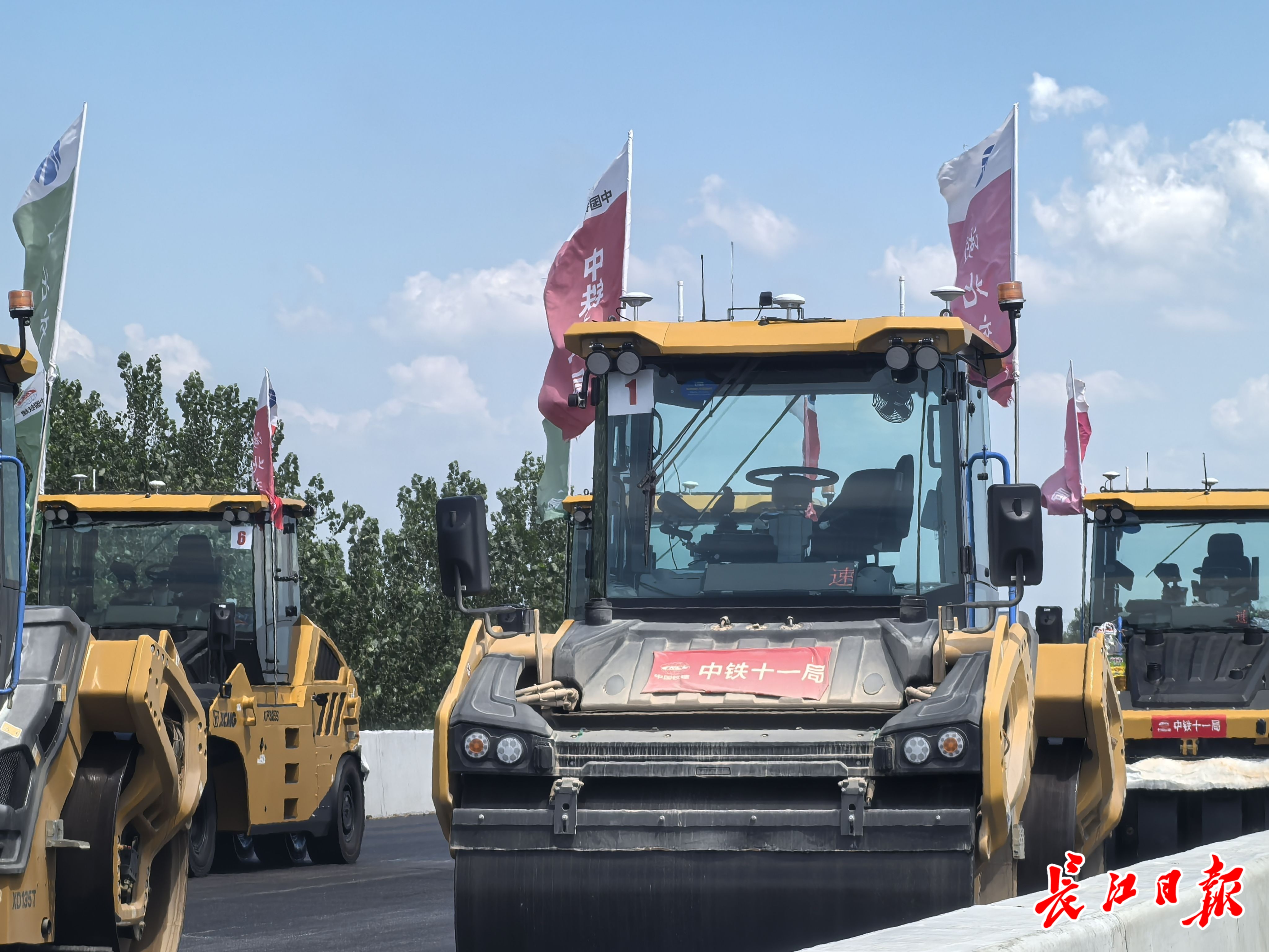 武汉新港高速公路无人摊铺现场。 通讯员刘若梅 摄