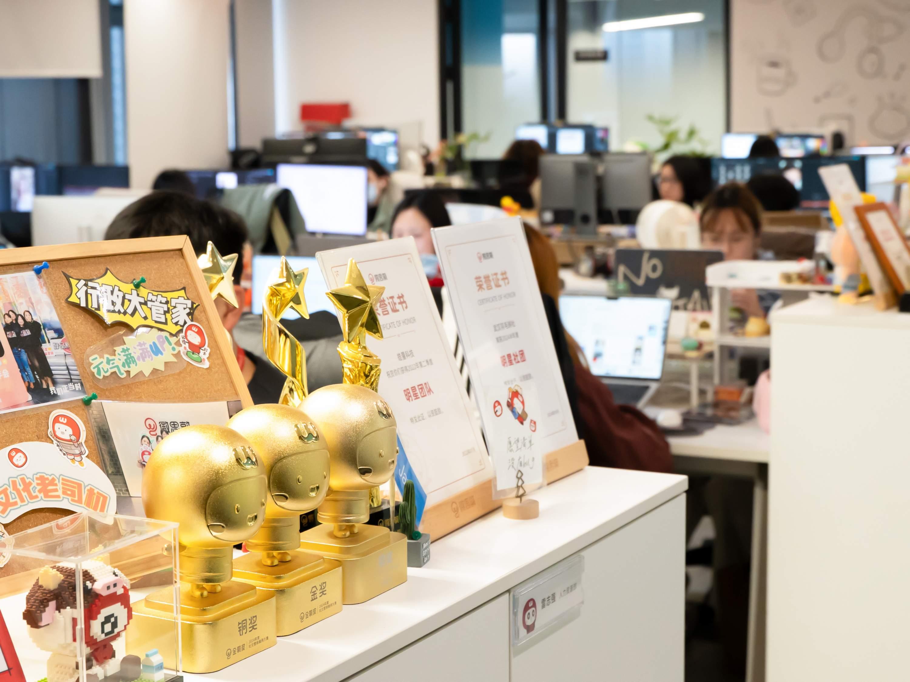 记者在微思敦的办公区看到,除了工作用的笔记本电脑,许多年轻人的工位上还有各式各样的玩偶、别具创意的咖啡杯、五彩缤纷的绒花等小摆设。据了解,微思敦550人的团队,平均年龄不到27岁。