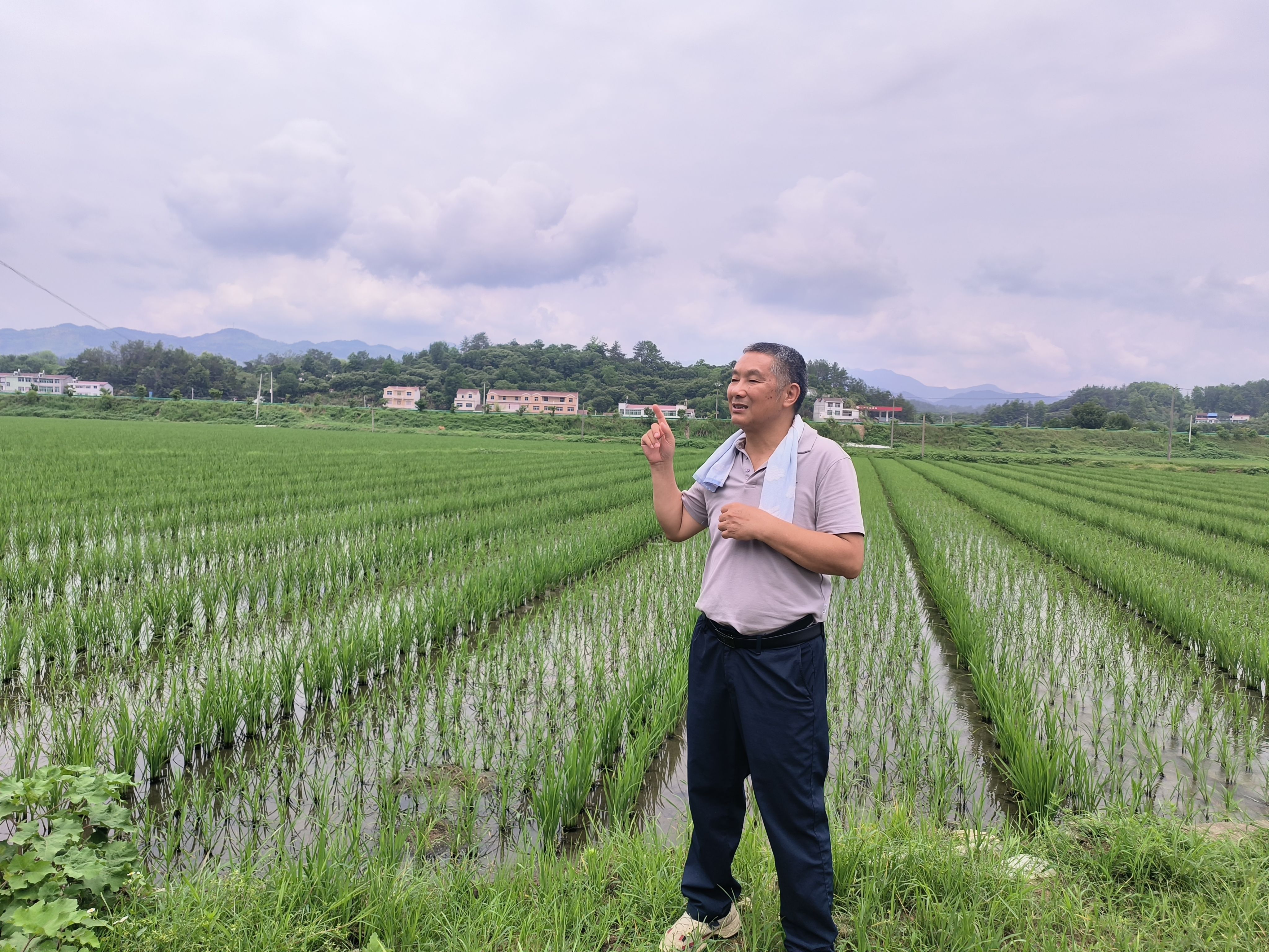 朱仁山在水稻田间工作。