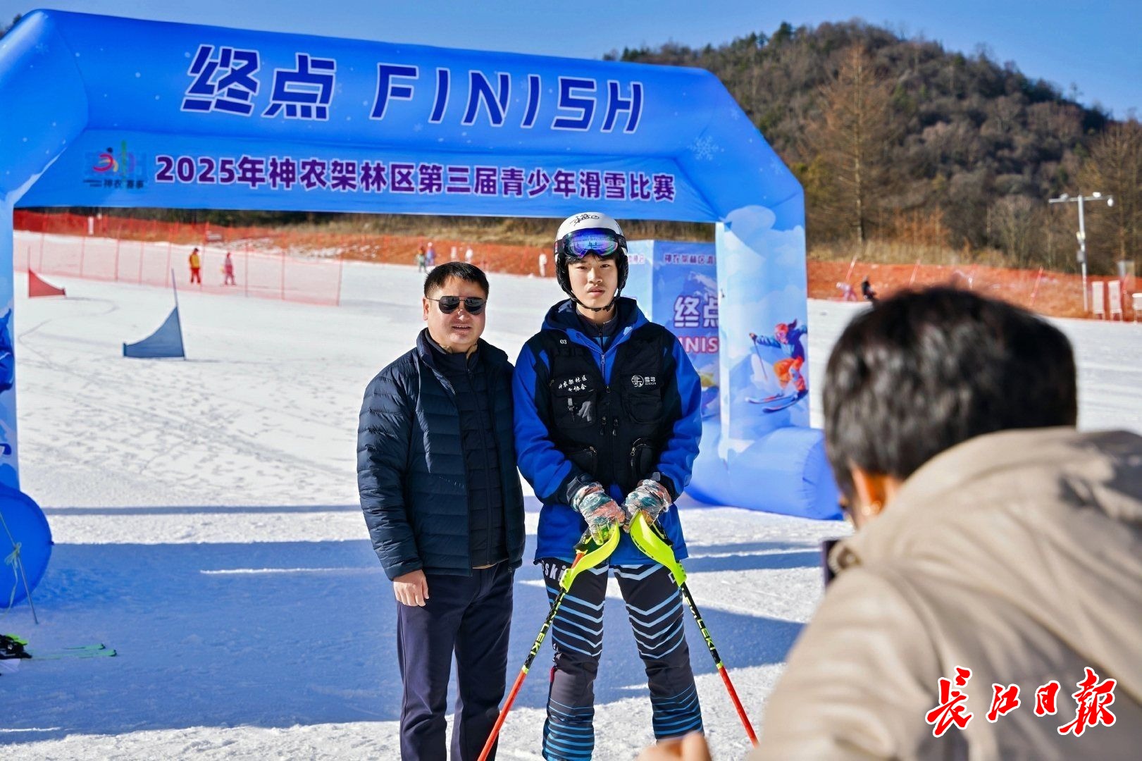 12月17日下午,“知音湖北 超级文旅日”神农架冰雪季在神农架国际滑雪场启动,神农架第三届青少年高山滑雪嘉年华(比赛)同时举行,来自神农架松柏镇的8岁小朋友周熠然夺得决赛第一名。