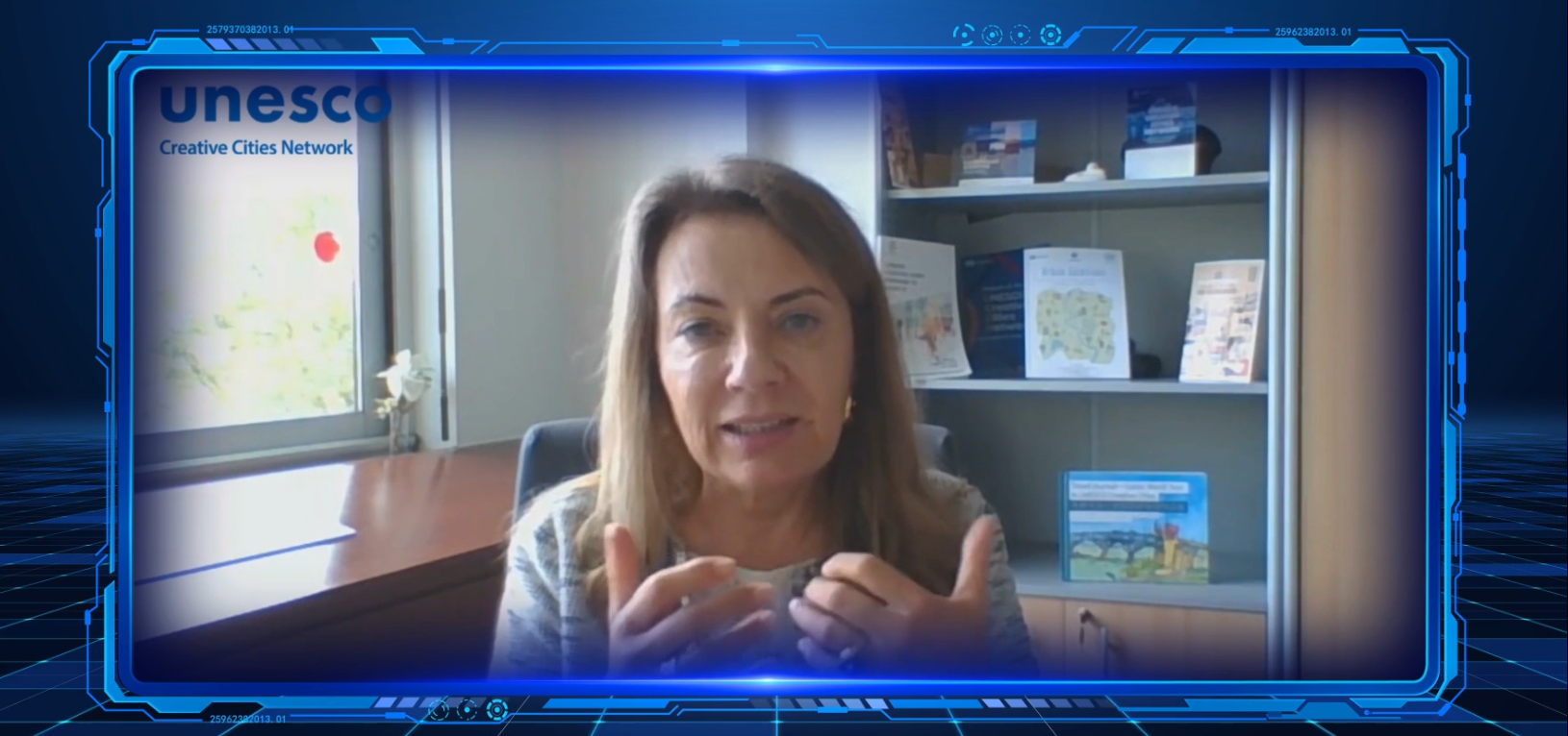 联合国教科文组织创意城市网络秘书长丹妮丝·巴克斯视频寄语。视频截图