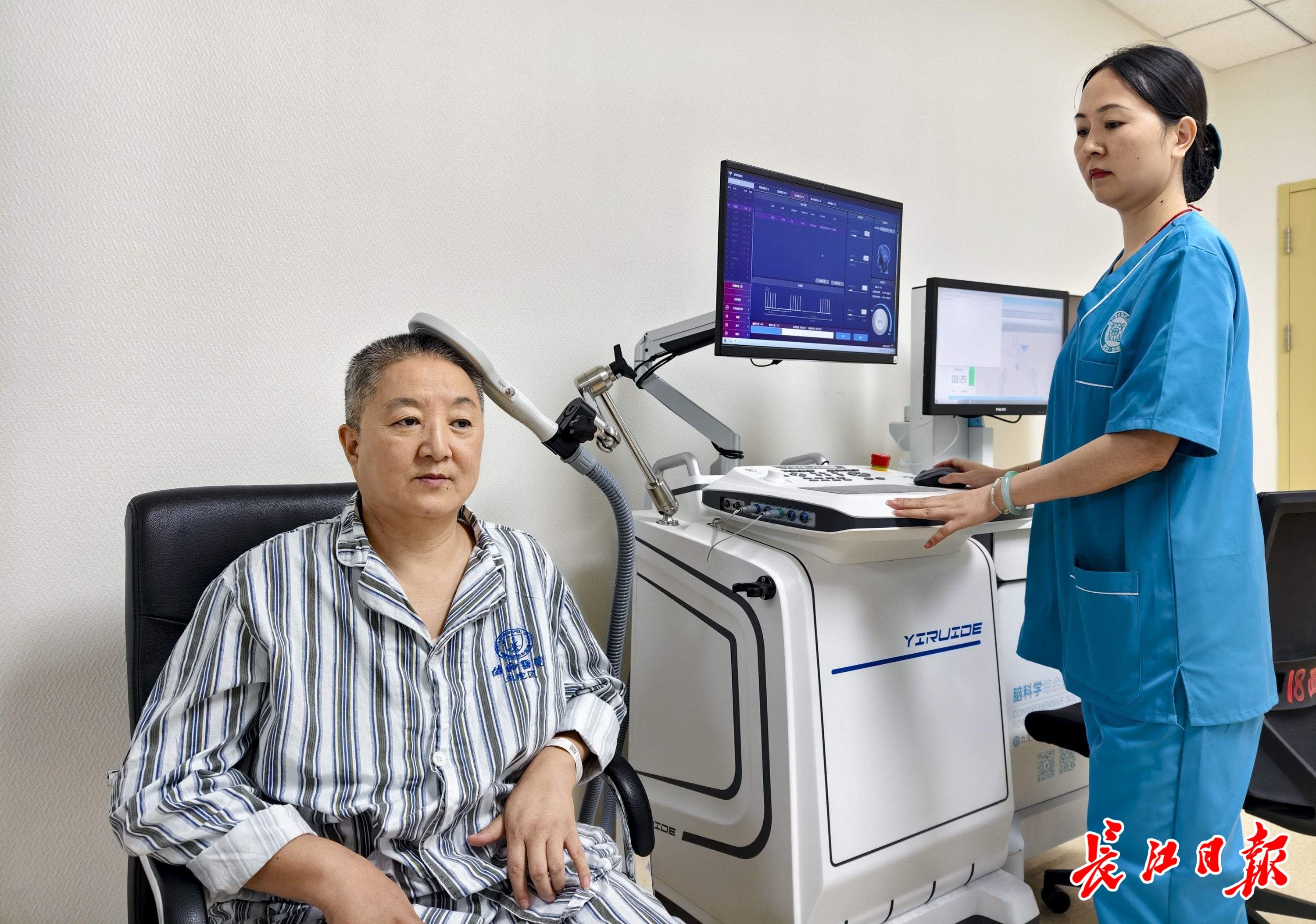 协和医院,经颅磁刺激脑部相关区域。摄影记者胡冬冬 摄