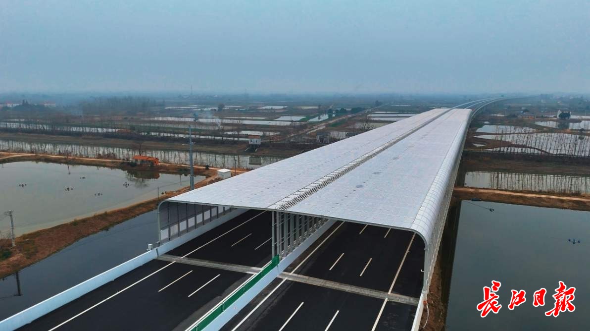 一段长达400米、造价1560万元的全封闭声屏障,专为涨渡湖湿地鸟类家族打造,这在万里长江桥梁建设中尚属首次。在大桥设计最高时速运行条件下,全封闭式结构可将大量交通噪声减弱至日常交谈水平。采用的透光率78%的亚克力磨砂屏体,既保证车辆通行采光,又能让飞鸟在百米外清晰识别,防止误撞,这些细节考量都体现了与自然和谐共生的极致用心。