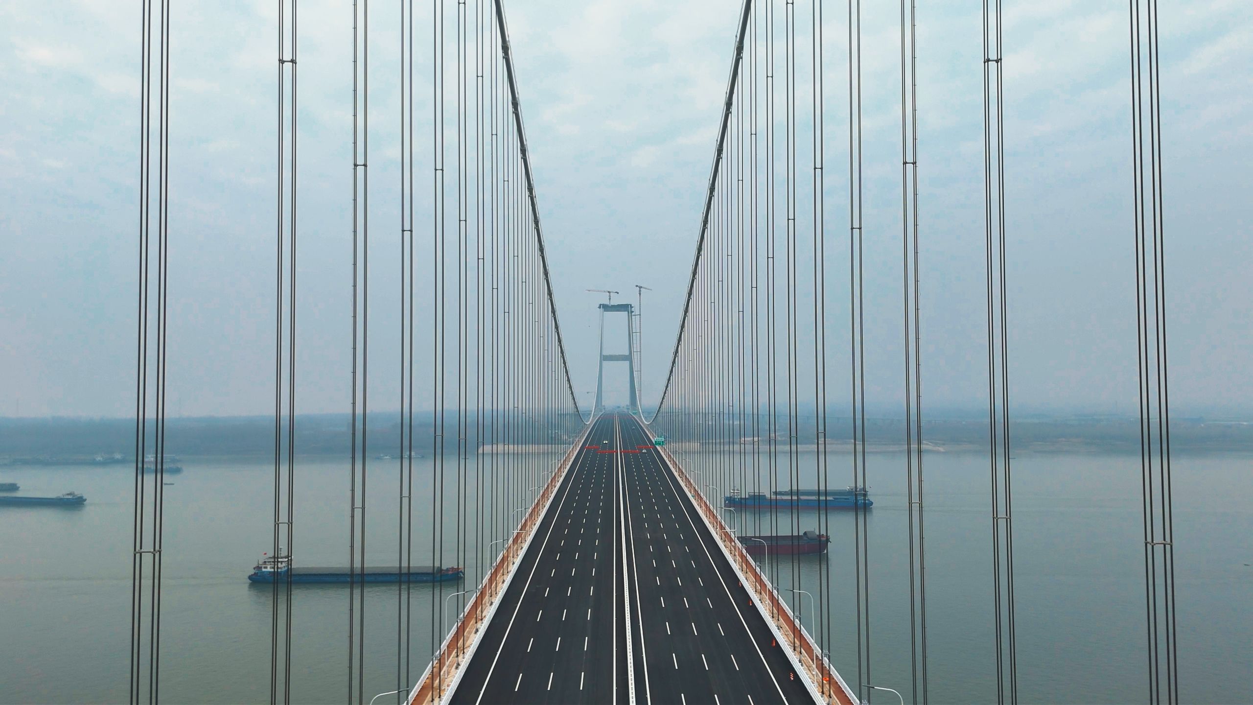 双柳长江大桥主桥面航拍。 通讯员杨鑫 摄