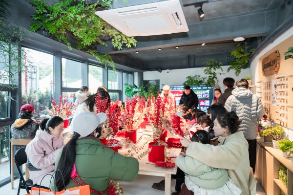 元旦下午,市民在花屿森活绿色驿站学插年宵花。通讯员杨升 摄