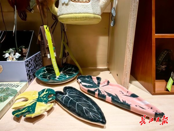 园艺工坊里,展示着一批出自湖北美术学院青年艺术家之手的迷你猫、萌哒狗等植物主题陶艺产品。