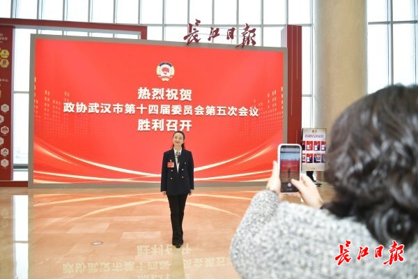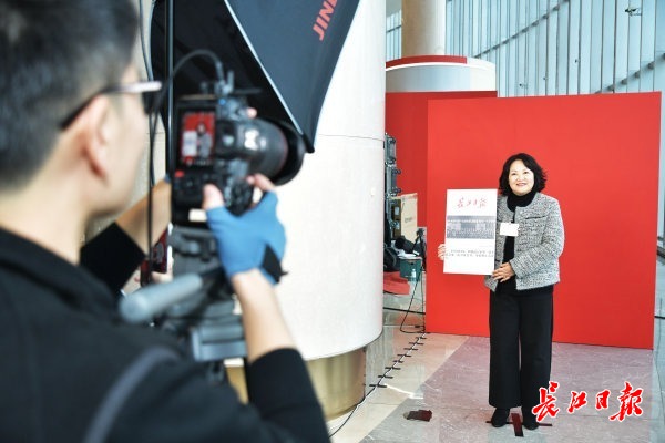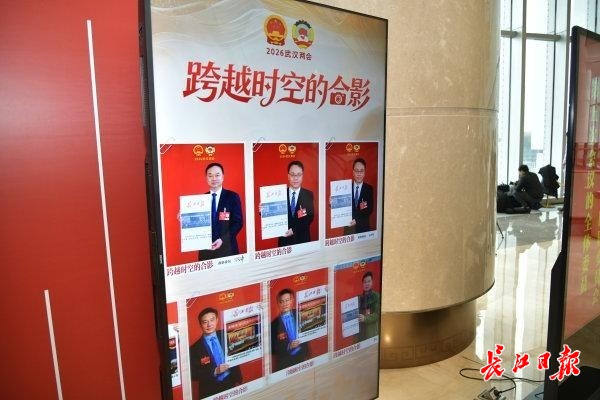 长江日报大武汉客户端1月5日讯 1月5日,在武汉两会现场,代表和委员们在长江日报互动区参与跨时空的合影,代表和委员们可与武汉市第一届人民代表大会会议现场和政协武汉市第一届委员会第一次会议(武汉第一届两会现场)现场合影。
