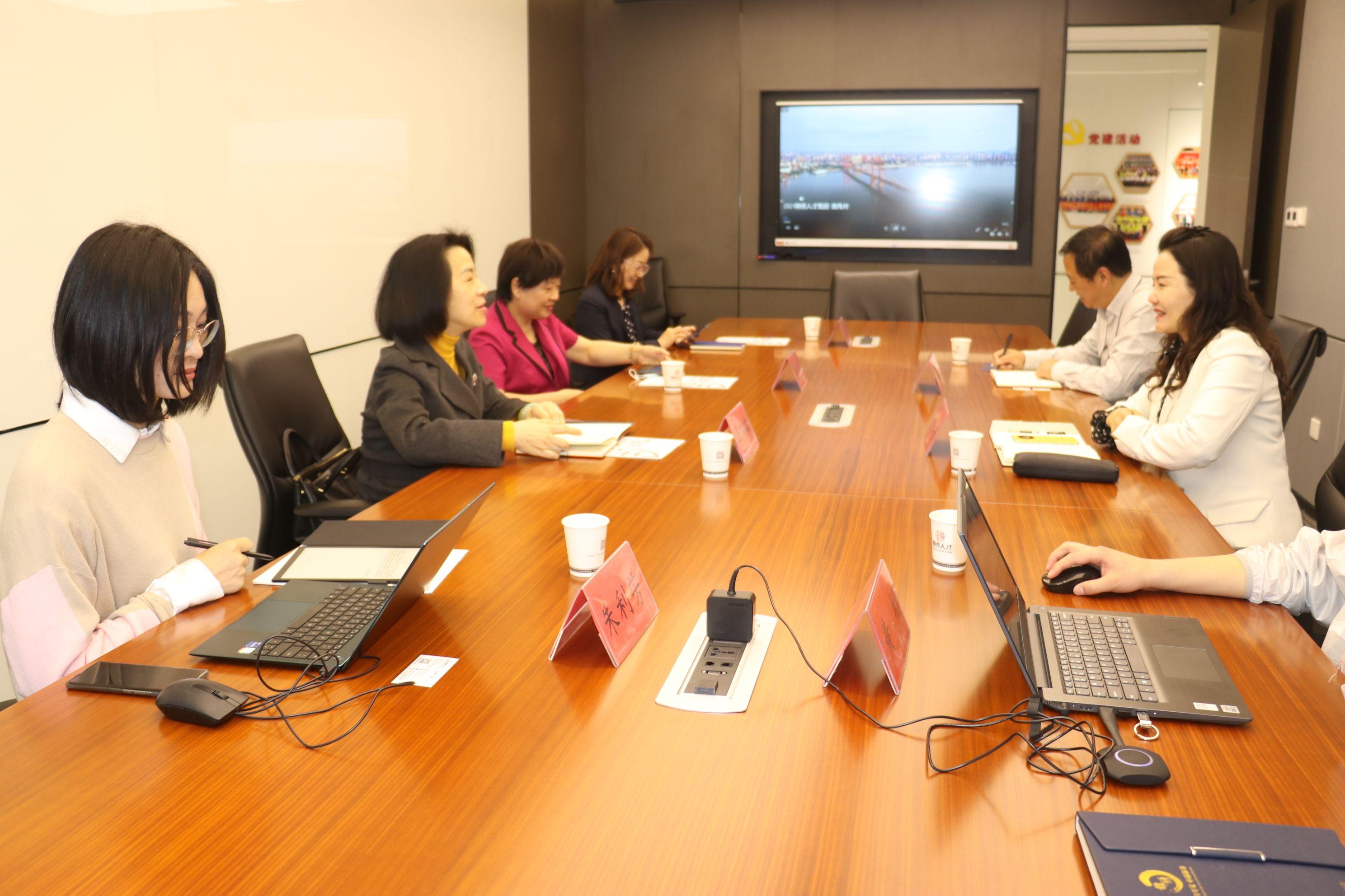 黄春燕(右一)与团队探讨如何精准服务企业。 (受访者供图)