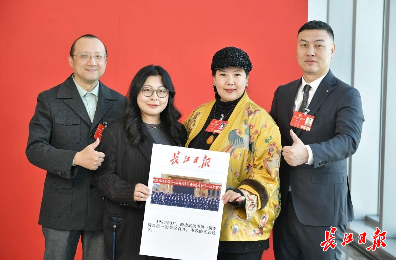 “跨越时空的合影”吸引代表委员积极参与互动,记者看到,有的代表委员还三人同框一同举起历史照片,共同纪念。等待照片时,代表委员交流的是履职心得,谈论的是对武汉明天的期待。