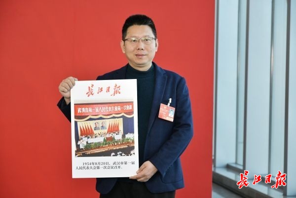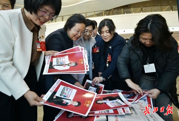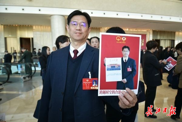 两会现场长江日报“跨越时空的合影”互动区 ©原创 2026-01-06 16:42 0 1月6日,武汉市第十五届人民代表大会第六次会议,会议现场的长江日报打造的“跨越时空的合影”互动区,参会的人大代表和政协委员们积极参与,手持老照片与历史“同框”。代表和委员们拿着现场制作好的照片合影留念。 (长江日报记者詹松 摄影报道) 【罗田甜】
