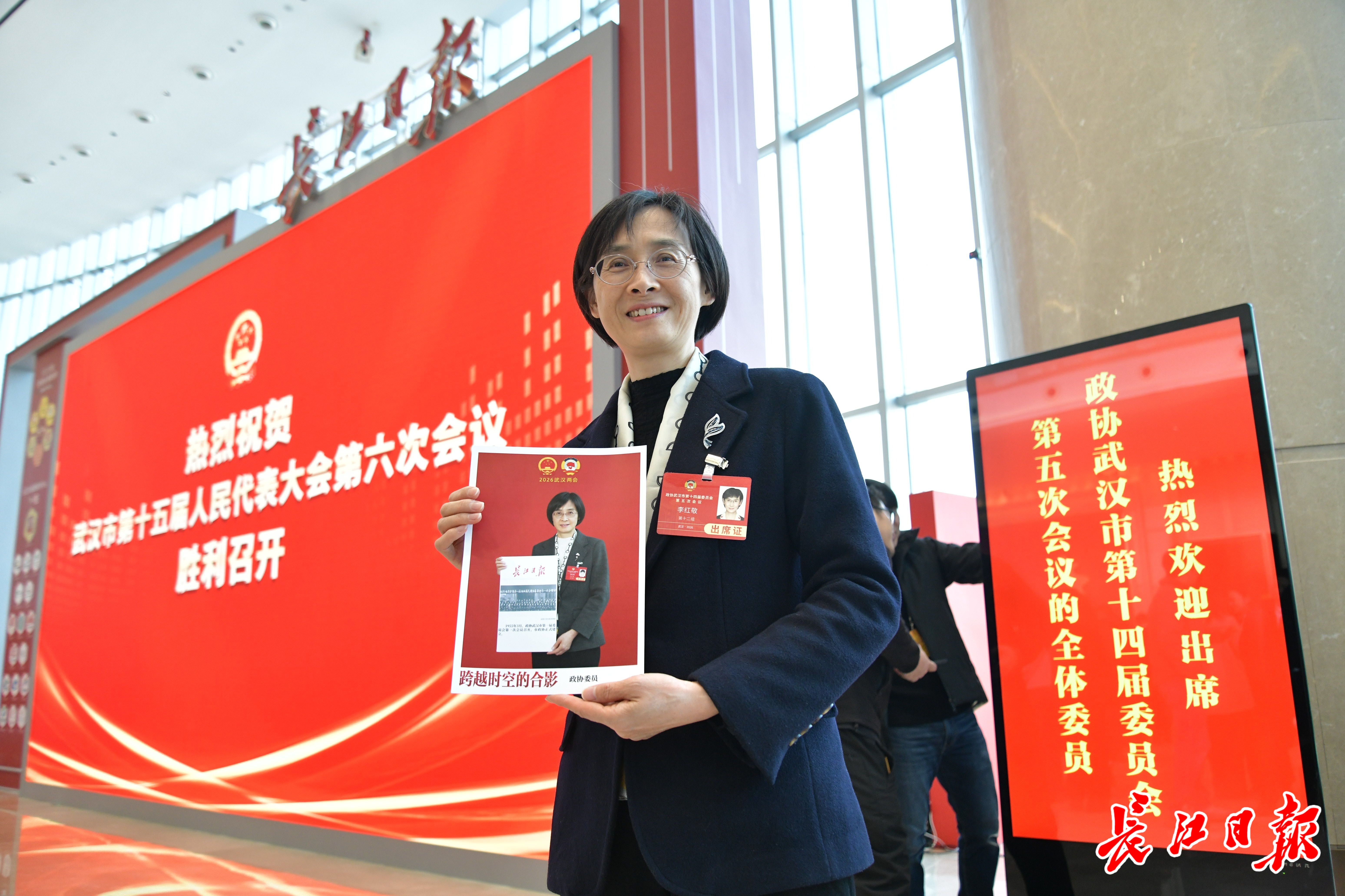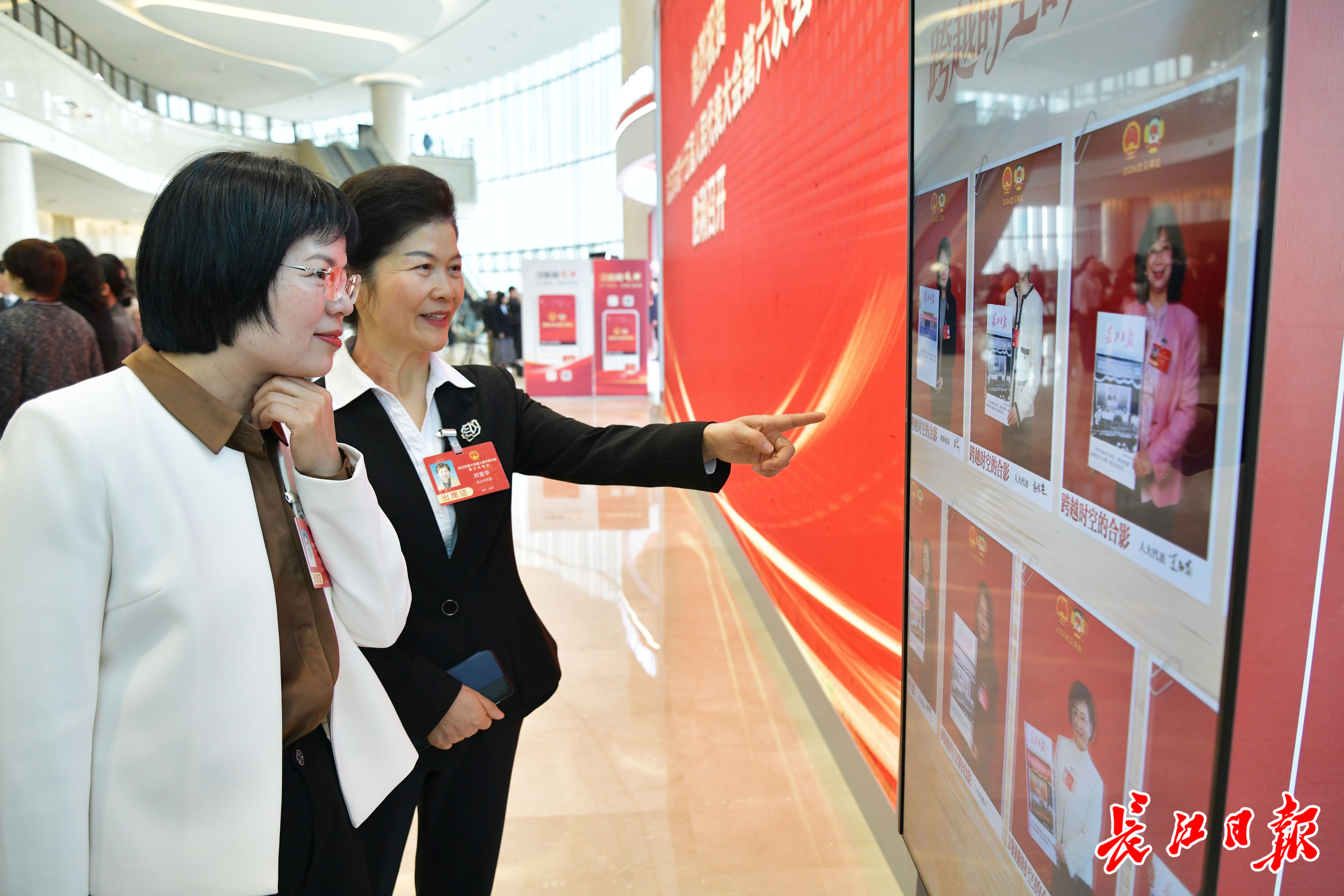 1月6日,代表委员在长江日报互动区留下“跨越时空的合影”。记者詹松 摄
