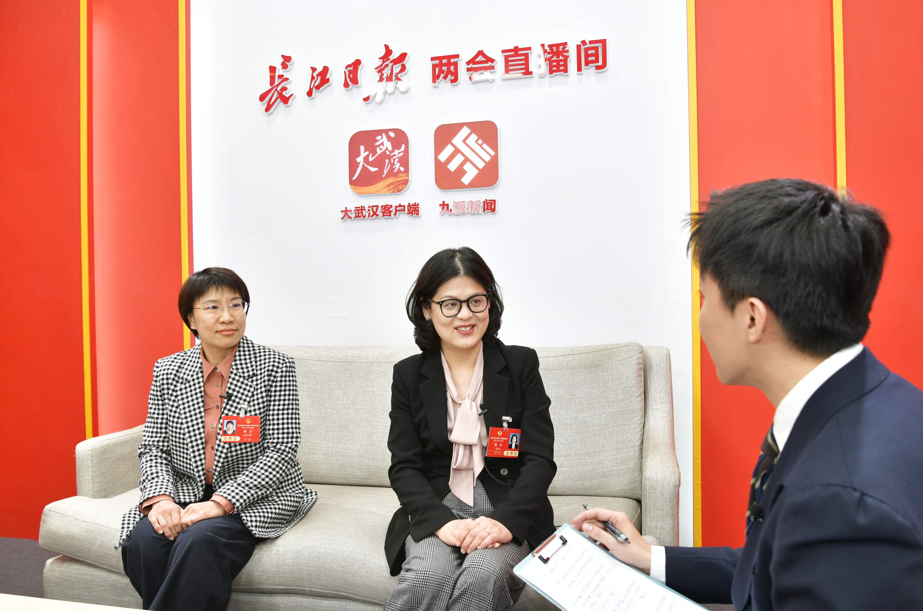 薄文(左)、董菲做客长江日报两会直播间(点击图片回看直播)。 记者詹松 摄