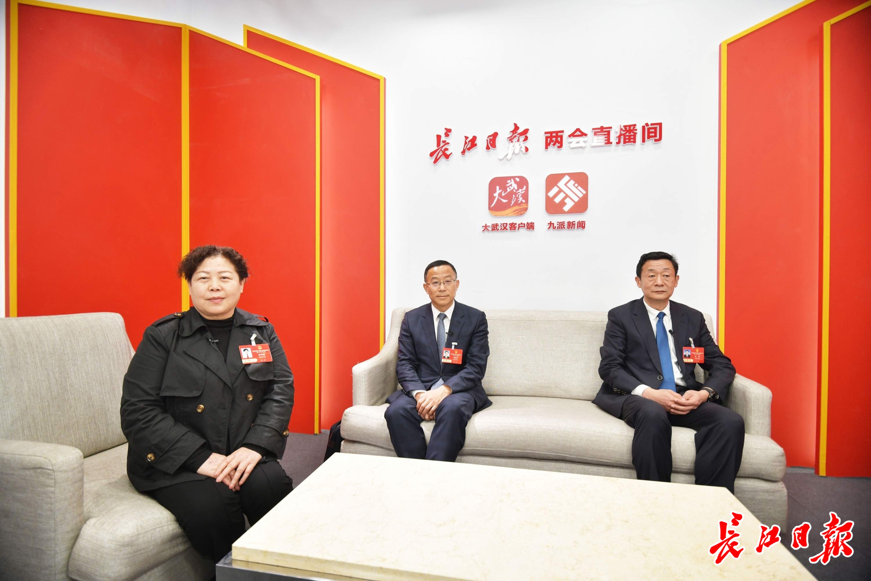 张波(右)、黄明卉(中)、王学丽(左)做客长江日报两会直播间(点击图片回看直播)。 记者詹松 摄