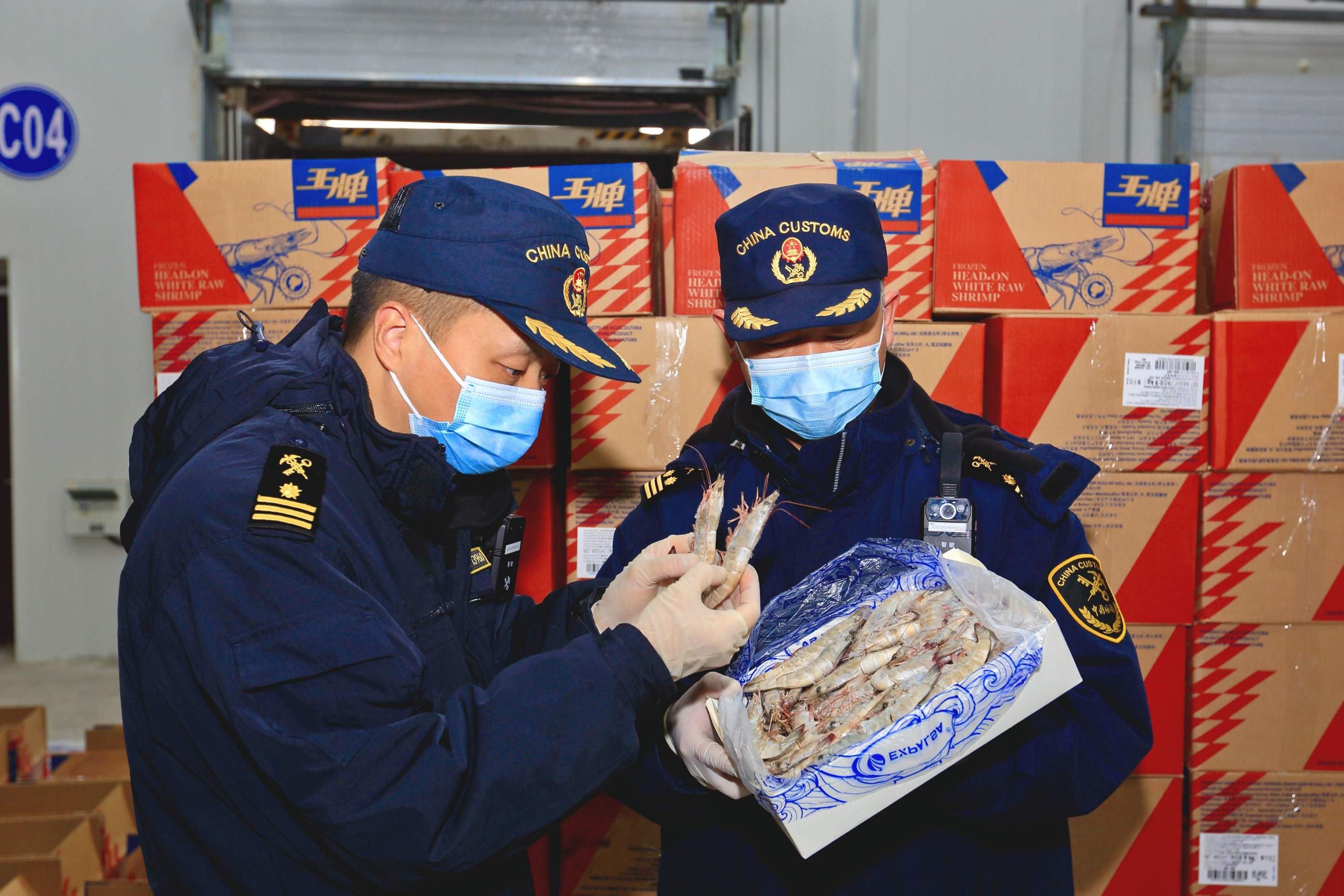 武汉新港海关关员监管直航进口货物。图为采访对象提供