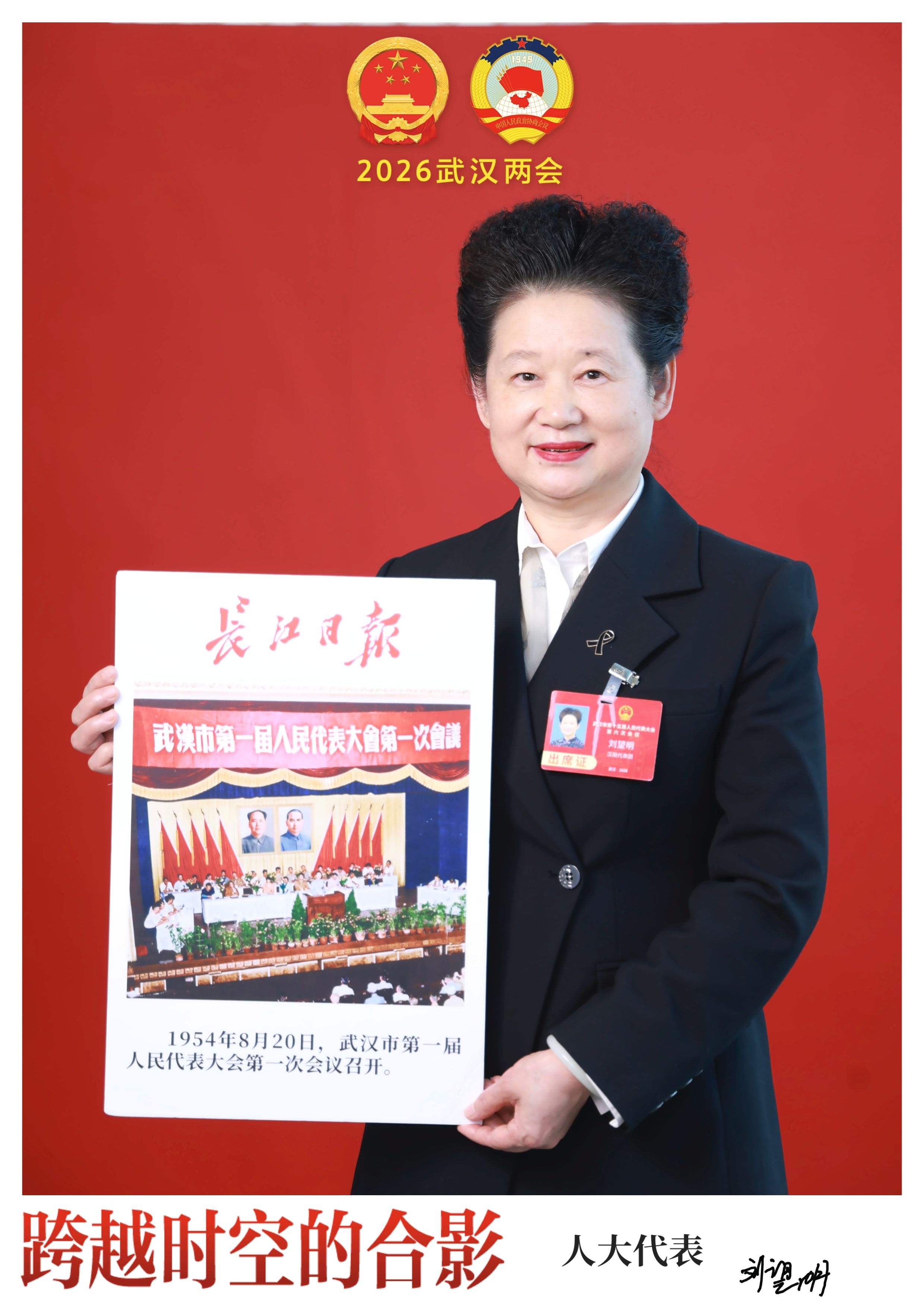 1月8日,市人大代表、武汉乐福园美食有限公司董事长刘望明来到长江日报“跨越时空的合影”互动区,与70多年前武汉市第一届人民代表大会第一次会议的老照片合影。