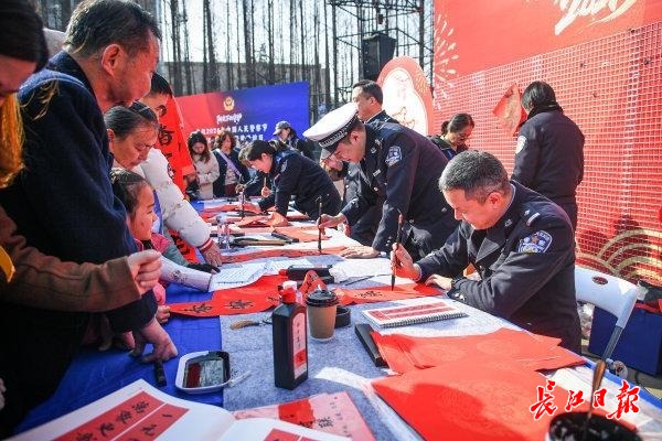 开放活动日上,民警还与市民朋友们一起互动写春联。 记者史伟 摄