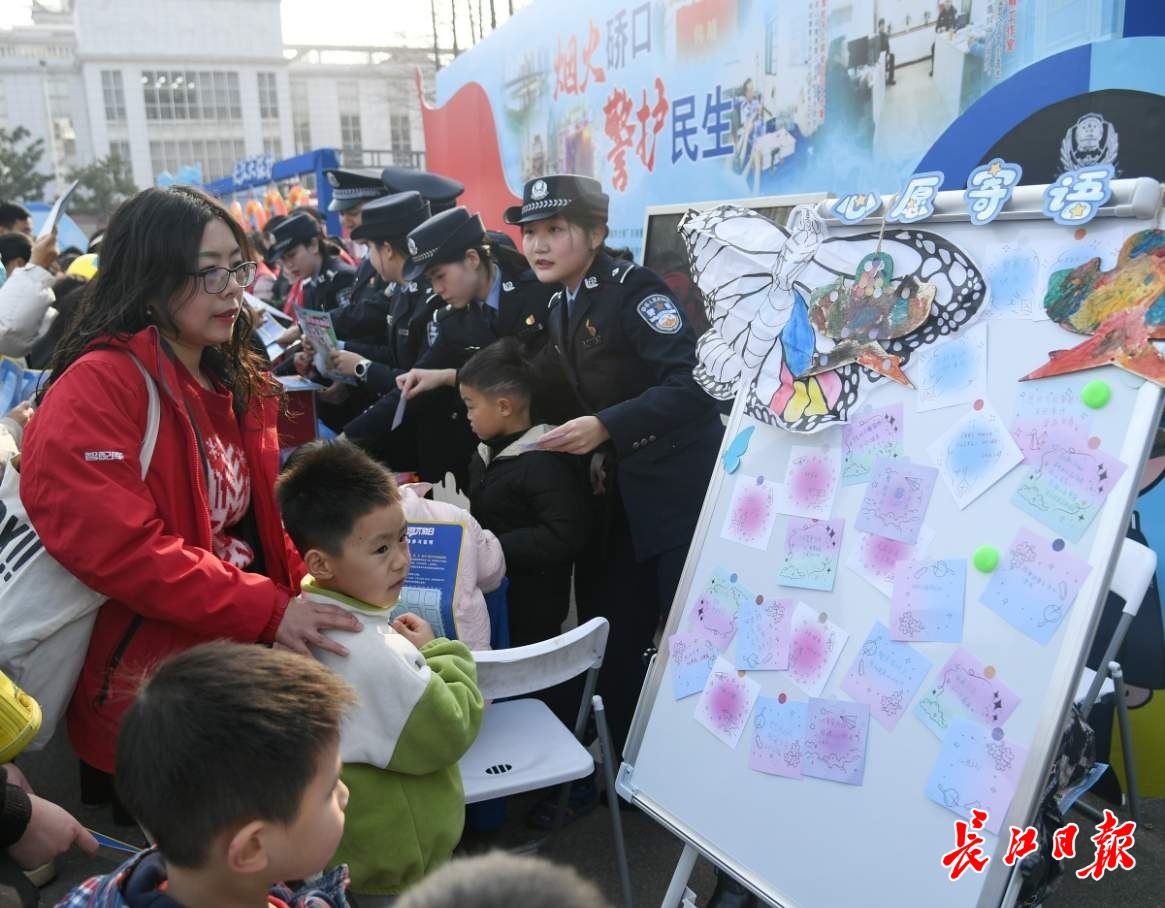 现场,多名警花与小朋友们互动。 记者史伟 摄
