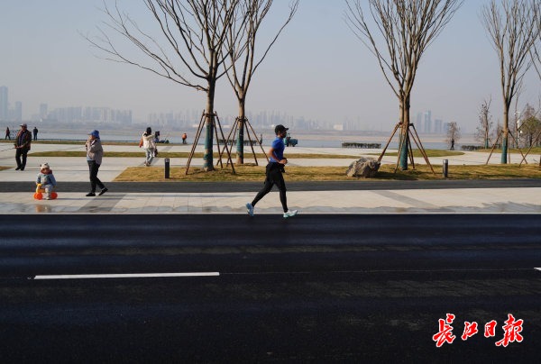 记者在改造完成的汉马终点看到,赛道平坦宽敞,两旁绿植葱郁。汉马终点区域位于青山区长江武汉段右岸,对应青山江滩建设一路至建设三路区域。青山区水务局相关负责人称,此次改造涵盖道路、广场、绿化等多项工程,不仅拓宽了青山江滩建一足球场以东和以西两处的堤脚下步道,对建三闸口跑道取直角改造,还优化江滩内绿化,增加樱花等树种,打造最美马拉松终点。