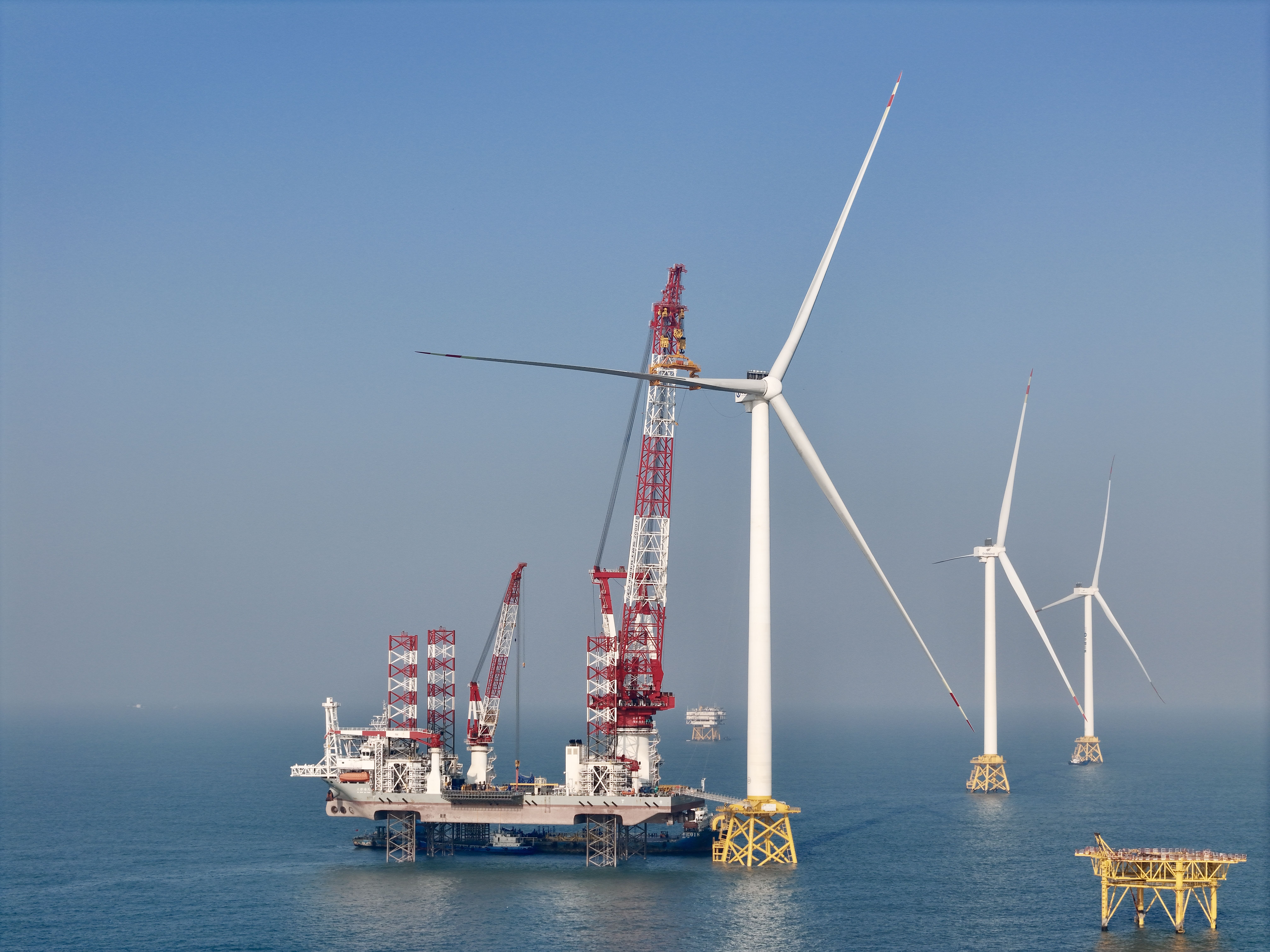 全球首台20兆瓦海上风电机组安装现场。 通讯员张峰 摄