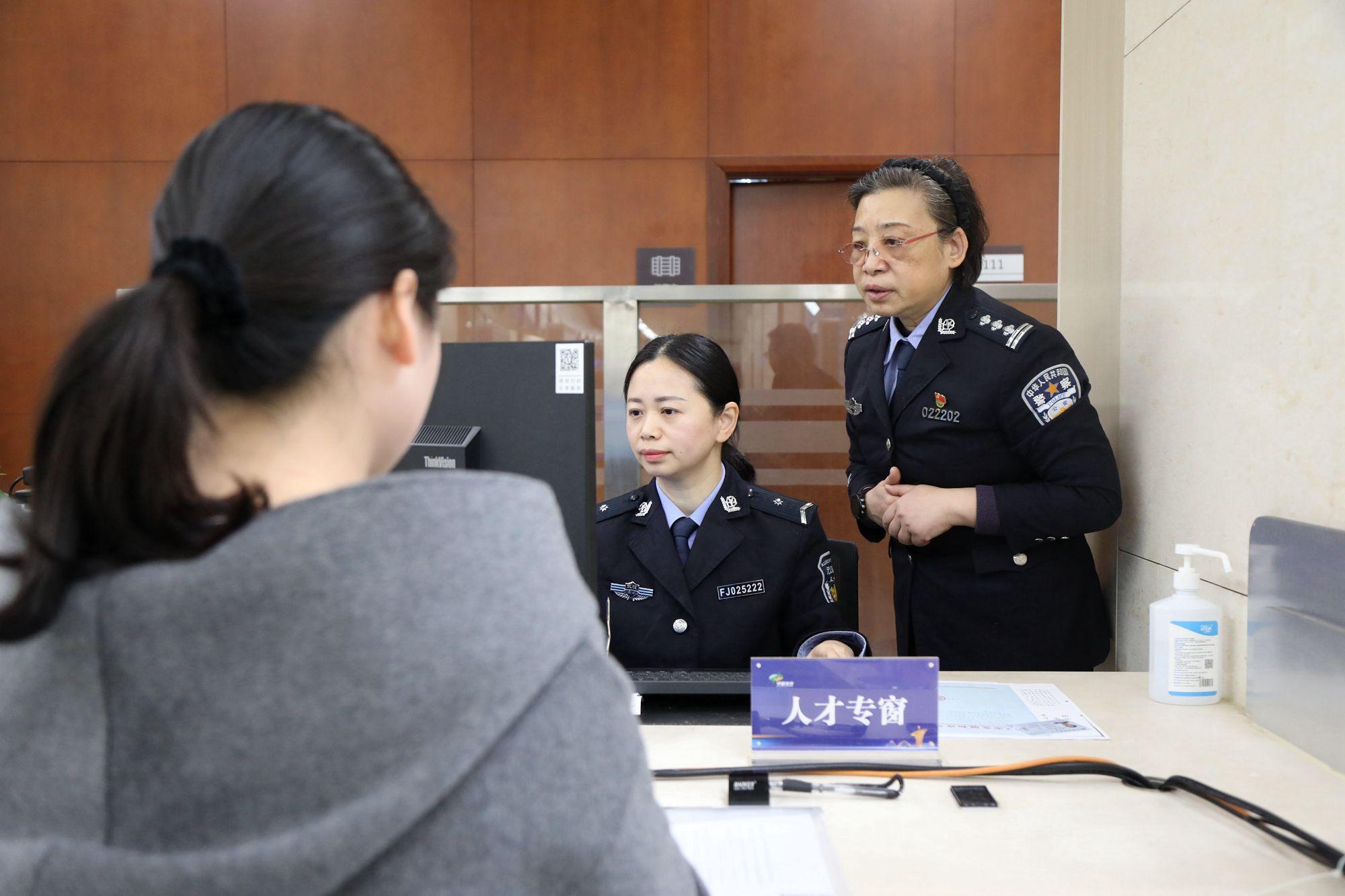东湖高新区政务服务中心公安人才专窗民警正在办事。 通讯员周继昌 摄
