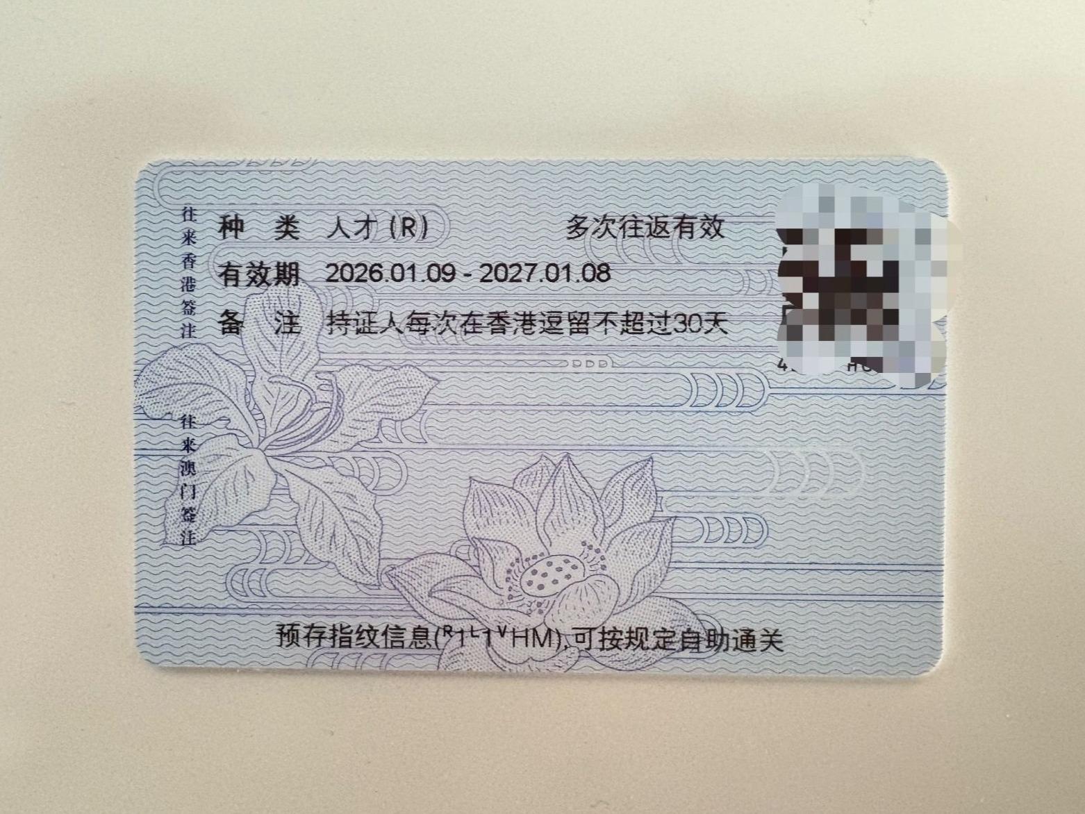 “签注种类:人才(R)”“多次往返有效”“持证人每次在香港逗留不超过30天”,王慧龙开心地向记者展示他刚拿到的香港人才签注上的信息,“而且我是5日下午提交申请的,新签注9日就生效了,12日我就收到了,算上邮寄一共才一周时间,实在太高效!”王慧龙说,拿到新签注后他还专门咨询了出入境民警,签注上注明“有效期一年”,也就是说,以后每年不管去香港出差多少趟,他只申办一次香港人才签注就够了。