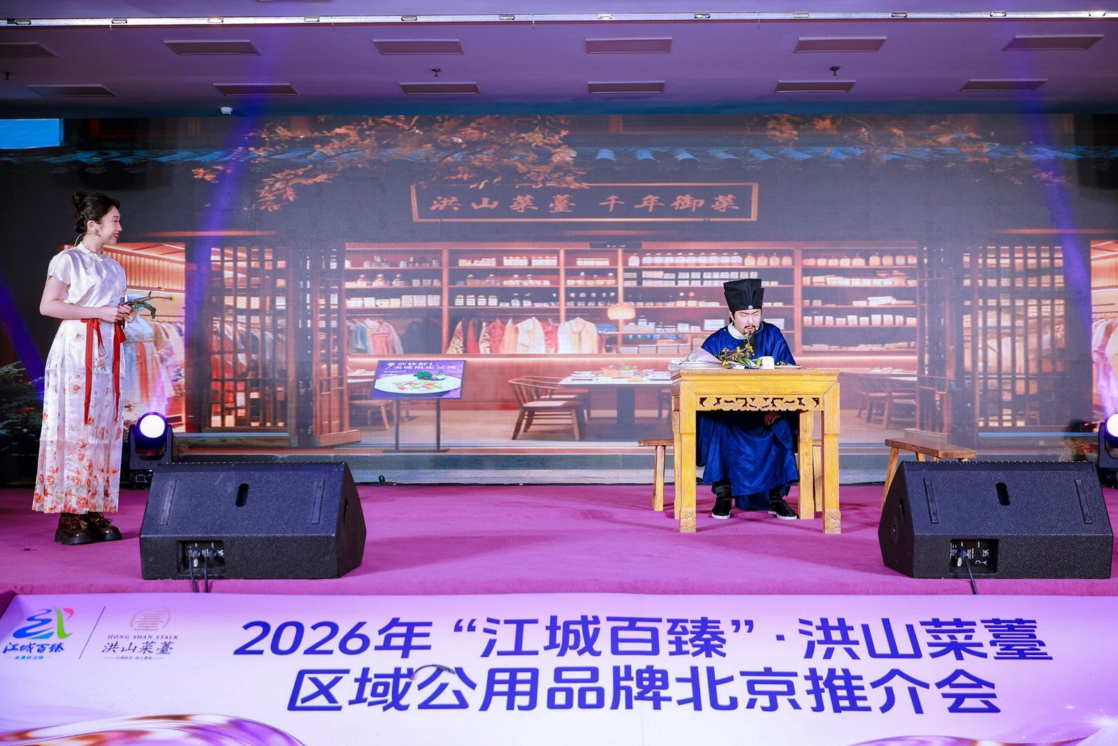 北宋大文豪苏东坡谪居黄州时,因喜爱洪山菜薹曾三访武昌。1月15日,2026“江城百臻”洪山菜薹区域公用品牌北京推介会在北京湖北大厦举行,苏东坡“穿越”到现场,与武汉农产品区域公用品牌“江城百臻”的推介官、 AI人物“紫菘”一起,生动演绎洪山菜薹“守古焕新、领鲜京城”的千年历程。