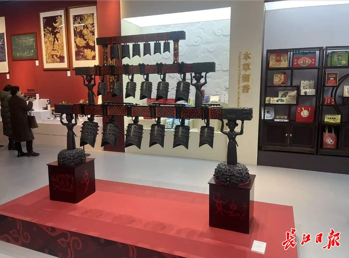 荆楚非遗国际会客厅展示了成套编钟。 记者万建辉 摄