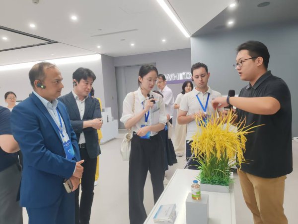 在武汉产业创新发展研究院,中外嘉宾了解“稻米造血”技术。周思彤 摄
