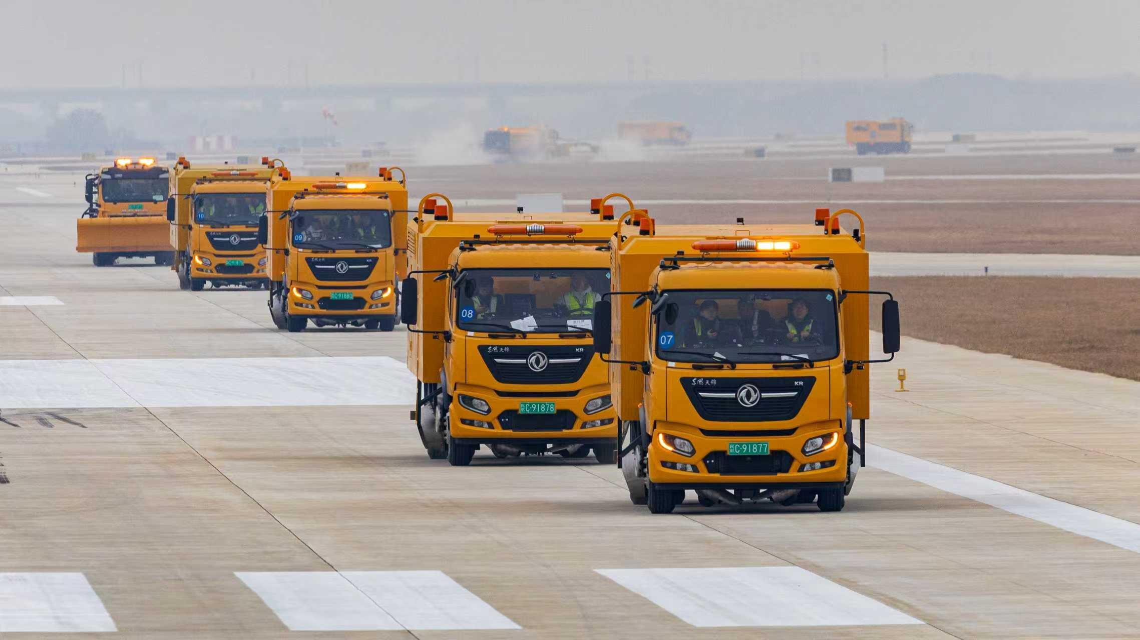 武汉天河机场、鄂州花湖机场近百台防雪除冰设备整装待命,全力保障航班飞行安全。