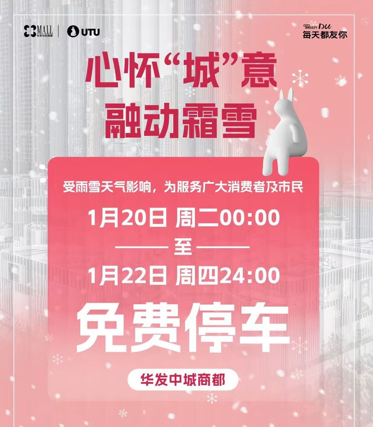 华发中城商都:从1月20日至1月22日免费开放地下停车场;