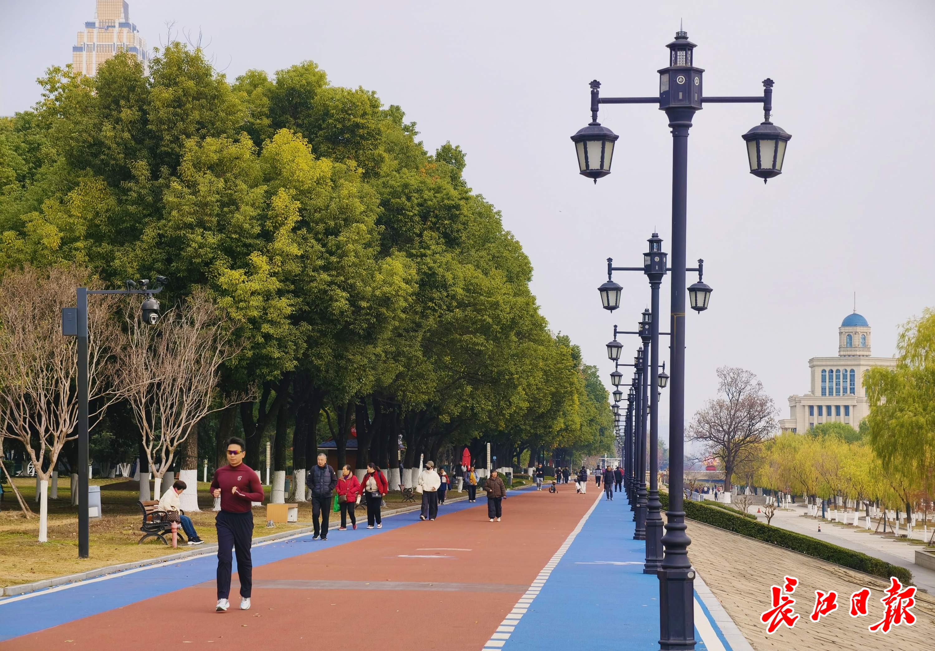 市民在汉口江滩跑步锻炼。 记者詹松 摄