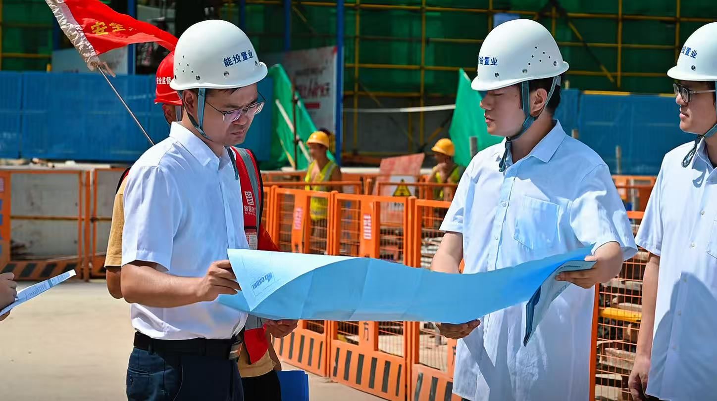 担任网谷能源总部项目负责人刘鸿明(左一)在工地现场。 通讯员杨宇飞 摄