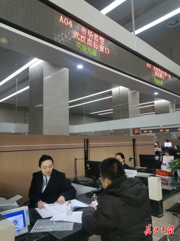1月23日,记者来到位于武汉市民之家的武汉商标受理窗口,几位市民正在工作人员指导下,有序排队办理业务。短短十几分钟,市民李先生就在窗口工作人员的帮助下,提交了公司营业执照、电子版商标图样、商品服务分类类别及自己的身份证复印件。很快办完了商标注册申请,“没想到这么快!”李先生笑称,后续只需等待国家知识产权局的受理通知书。